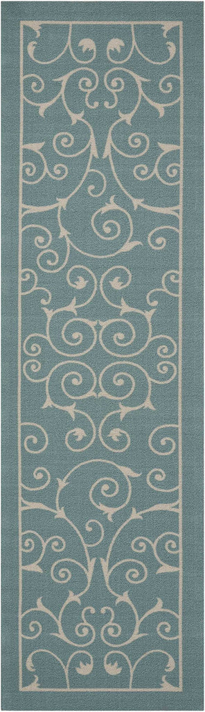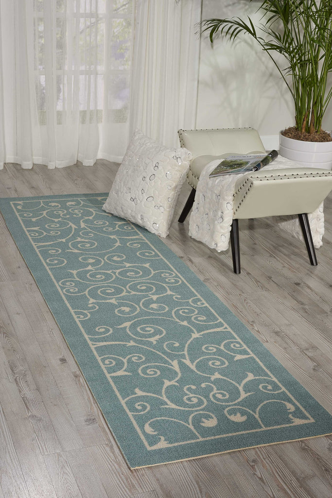 Details: The Budapest BP01 Light Blue 2'3" x 8' indoor or outdoor Runner Rug stands out with its unique floral pattern set on-top of a contiguous background brought to you by the geniuses at Nourison, the world renowned floor covering maker. Nourison is recognized worldwide for variety, consistent innovation and the quality of its assortments. The world-renowned floor-covering maker understands what her customers want and gives it to them through her cutting edge products. Nourison just keeps the bestsellers coming season after season. A magical ambience is created by the exquisite patterns incorporated into the rug's design that makes it suitable for a wide range of themes for your home decor. This elegant rug is made from 100% Polyester, making it easy to maintain. Stains and dirt do not penetrate the surface of the rug and can be treated with a moist cloth and a vacuum cleaner. Perfect as a bedroom rug or a living room rug, your guests are bound to be overcome with envy. Featuring a sublime construction pile of high-density material, this stunning rug provides a sensual touch to the soles of your feet.