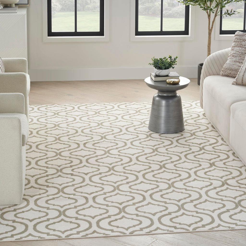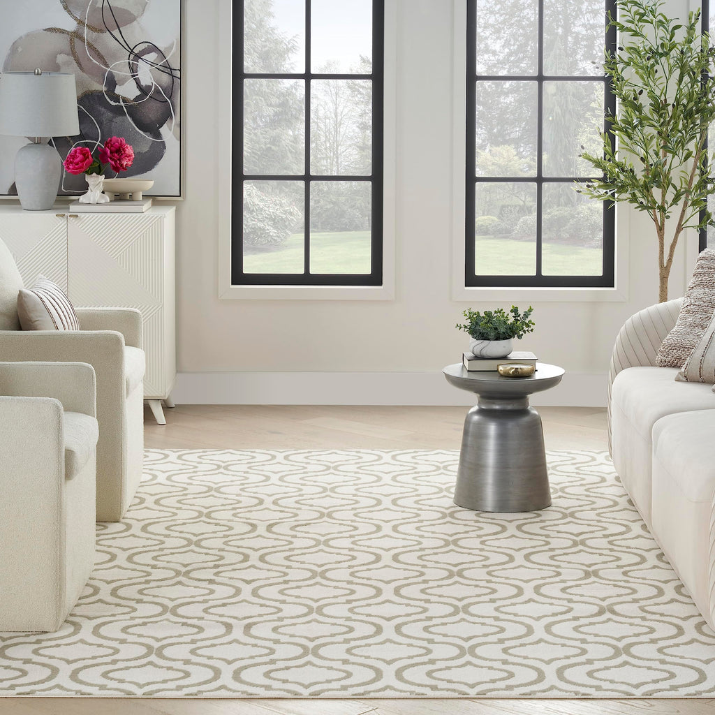 Nourison Jubilant 63x87 Indoor Transitional Fabric Rug in Ivory and Green