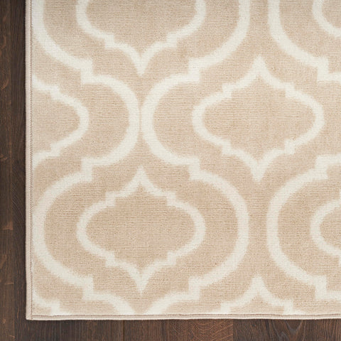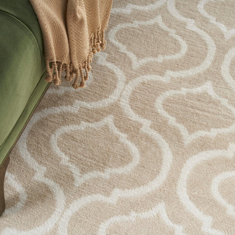 Details: Smart and sophisticated, the Jubilant Collection presents contemporary rugs with fresh new looks and modern color palettes. Beautifully appealing in pastel shades of pink, blue, and grey, each rug features a durable low-pile construction from low-maintenance, easy-care fibers that will blend perfectly into any casual boho setting. Introduce a touch of global flair to your space with this intriguing beige trellis rug from the Jubilant Collection. The repeat pattern is made with low-maintenance polypropylene yarns for easy placement in your living room, bedroom, kitchen, or dining room. Simple yet versatile, this Moroccan lantern rug complements a variety of styles, including modern, farmhouse, and boho.