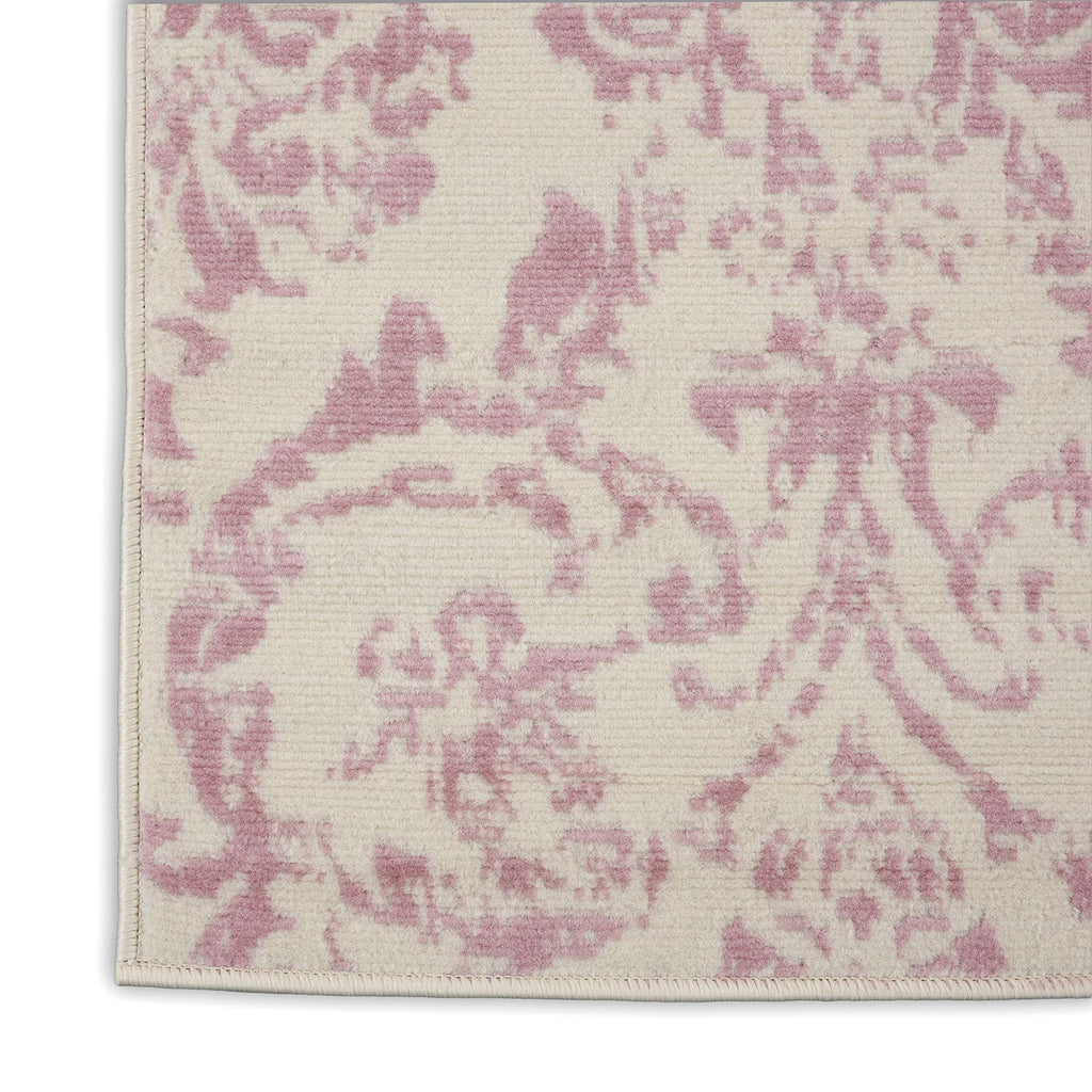 Details: Smart and sophisticated, the Jubilant Collection presents contemporary rugs with fresh new looks and modern color palettes. Beautifully appealing in pastel shades of pink, blue, and grey, each rug features a durable low-pile construction from low-maintenance, easy-care fibers that will blend perfectly into any casual boho setting. Dramatically distressed color effects and ornate European damask designs bring a vintage antique vibe to this Jubilant Collection area rug. Striated pink patterns on an ivory white field bring an authentic elegance to your favorite room, with a sleek low pile of easy-care fibers.
