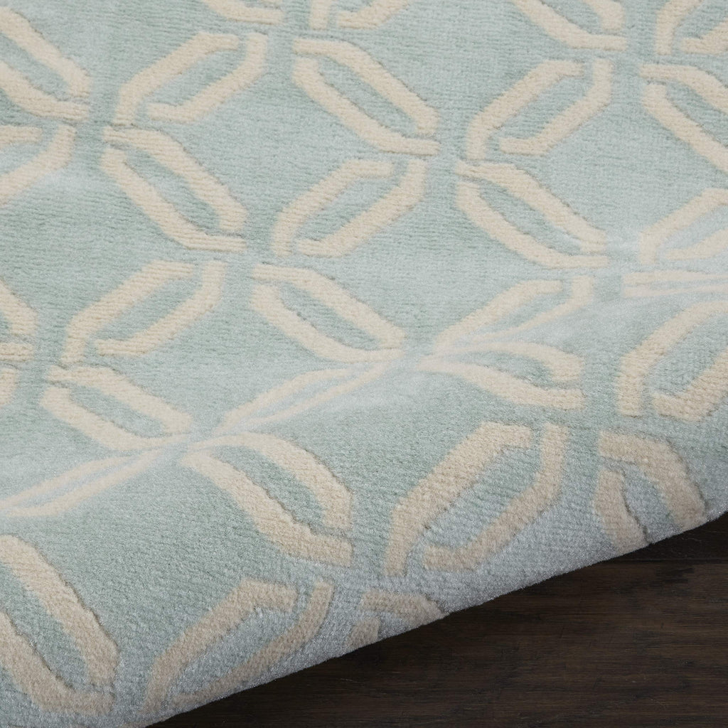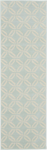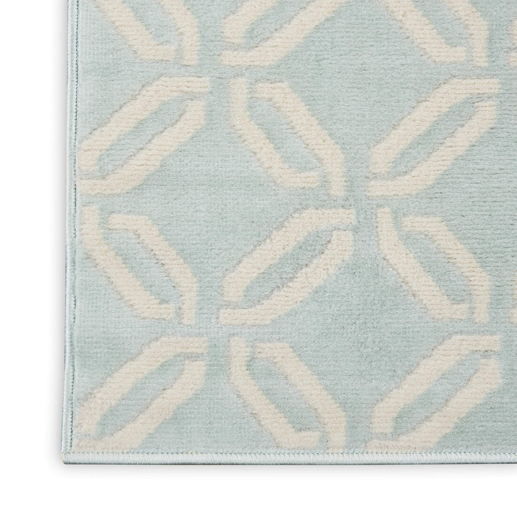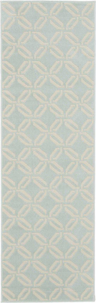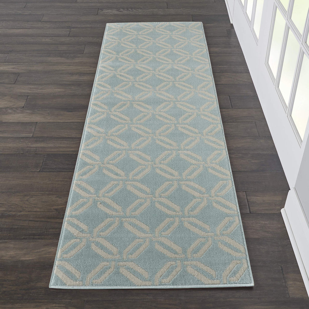 Details: This bold and eclectic hallway runner rug from the Jubilant Collection features a contemporary interlocking trellis design, making a statement of classic chic in ivory on aqua. Sleek, low-pile construction from easy-care fibers lets you bring extra energy and excitement anywhere in the home.