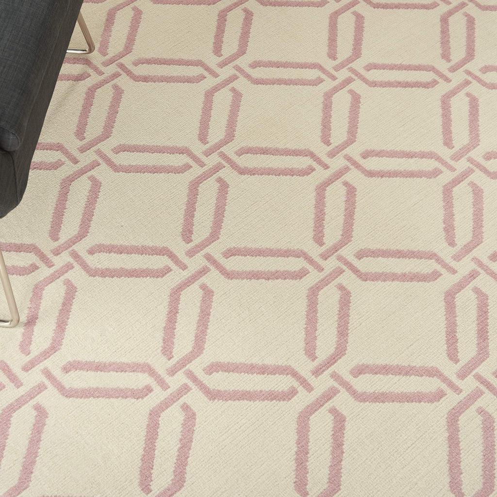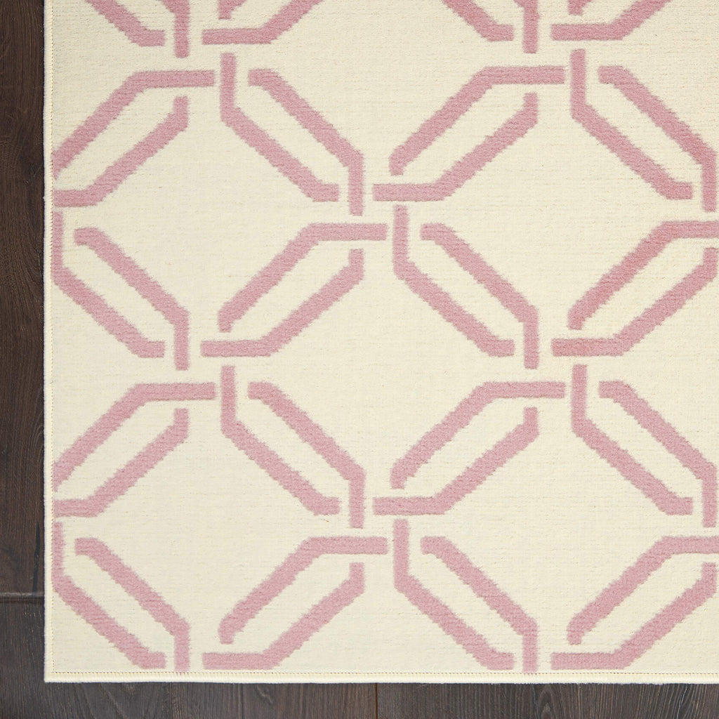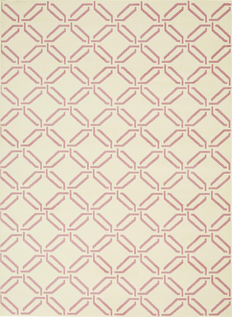 Details: This bold and eclectic rug from the Jubilant Collection features a contemporary interlocking trellis design, making a statement of classic chic in pink on ivory. Sleek, low-pile construction from easy-care fibers lets you bring extra energy and excitement anywhere in the home.