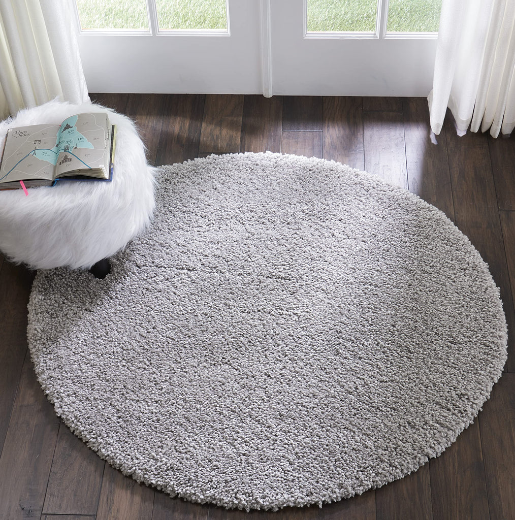 Details: With its positively plush and lush fabrication, fabulously thick pile and sensational sheen, this Malibu shag area rug from Nourison is as extravagant to the eye as it is underfoot. In a splendid silvery grey shade, this sensational POWER LOOMED shag rug will bring a fashion-forward flair to any room.Features : Advanced power loom construction for excellent value and qualityIdeal for rooms with moderate foot trafficEasy spot cleaning and maintenanceRug pad recommendedDue to the detailed construction of our rugs, both handmade and machine-made, sizes may vary by up to three inches in width or length.Serged edgesEasy-care fibersSpecifications : Material : 100% Polypropylene Backing: LatexProduct Color : Silver GreyProduct Dimensions : 48.00" x 48.00" x 1.54"Size : 4' x ROUNDShape : Round