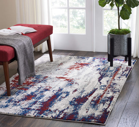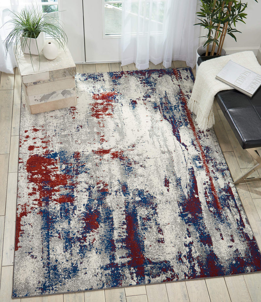Details: This magnificently modern Maxell area rug elicits images of abstract artistry. Simulated brush strokes and splashes of rich blue, red, ivory, and grey tones play out on a silky cut pile for a beautiful touch of contemporary comfort in any room in the home.