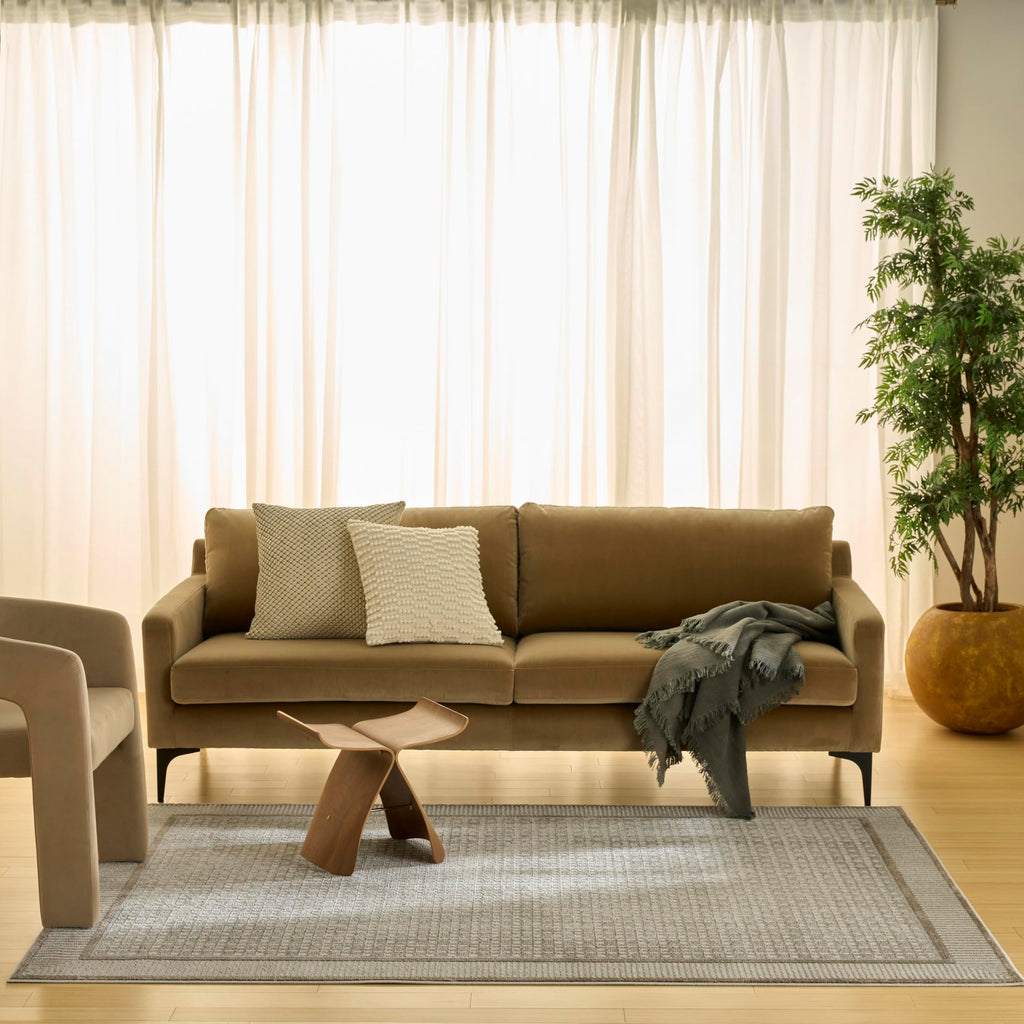 - Scandinavian-inspired rug featuring a simple design that infuses calming energy into your space
