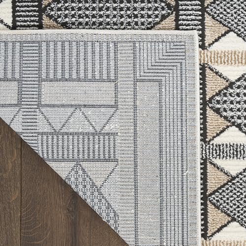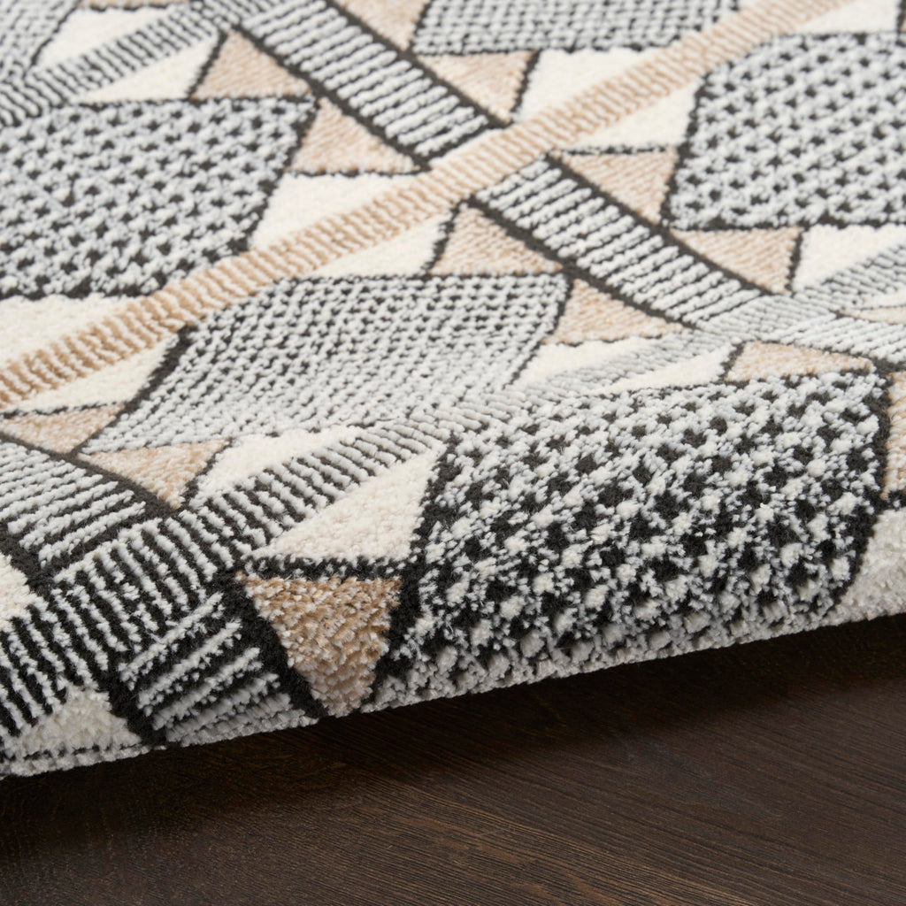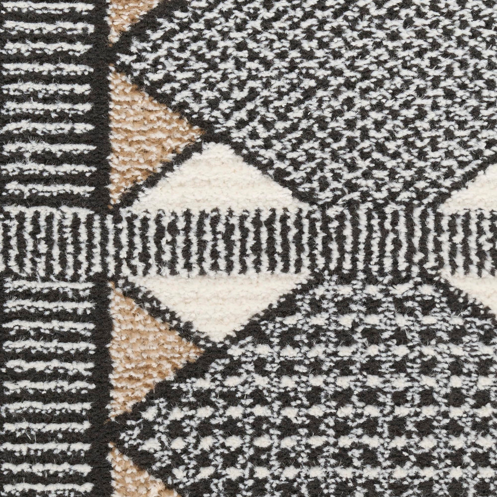 Details: Invite clean, understated elegance to your décor with the Nordic Collection. These abstract and geometric rugs draw inspiration from the principles of Scandinavian design to bring you simple, yet impactful looks that help create a more serene atmosphere. Each style is finished with a subtle sheen and high-low dimensional pile that adds visual appeal without overwhelming your space. Choose from a variety of sizes to create a coordinated look between rooms – from runners for the kitchen and bathroom to large 8x10 rugs for the living room. Invite a sense of calm to your décor with this beige and black geometric rug from the Nordic collection. The Scandinavian-inspired diamond pattern emphasizes symmetry and simplicity, bringing a clean and balanced look into your surroundings. This modern rug is enhanced by a subtle shimmer and high-low pile for added movement and dimension.