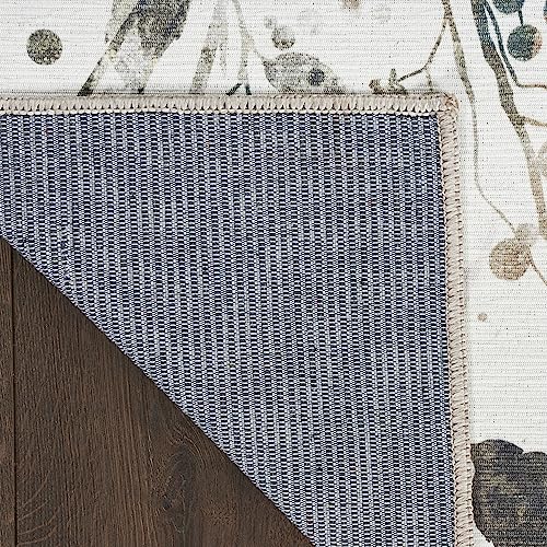 Details: The Nourison Washables rug collection is a practical and stylish addition to any home. Each design is made with a recycled cotton non-slip back for added peace of mind, especially in areas prone to trip hazards. Choose from a variety of chic designs, including abstract, geometric, animal print, and floral rugs to effortlessly elevate your décor. Machine-made from poly-cotton blended fibers in a flat weave style. Add a touch of artistic elegance to your home with this ivory Nourison Washables floral rug. This rug features a beautiful floral silhouette design in a soft watercolor style, creating a serene and calming atmosphere in any space. Made from durable materials, this rug is easy to clean and includes a non-slip backing for added safety.
