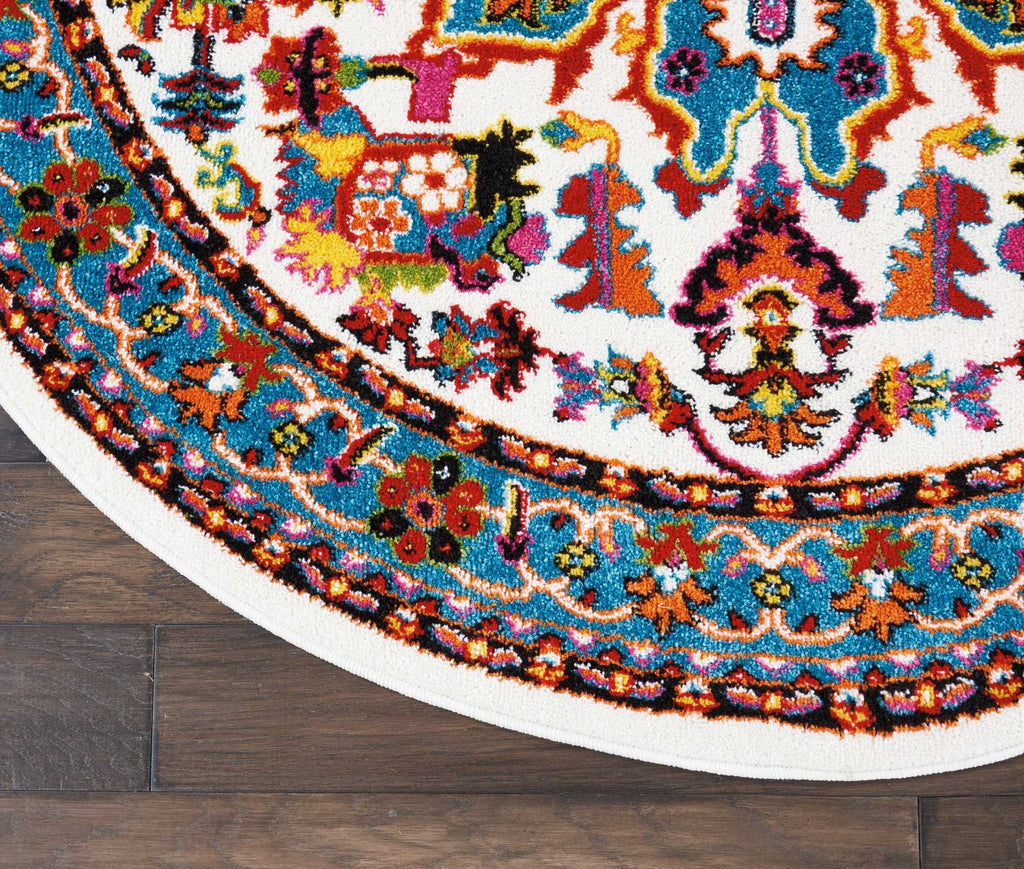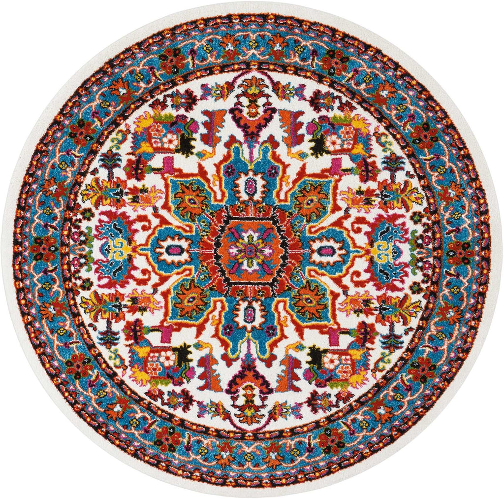 Details: Bring more color into your home with the vivid beauty of Oakdale area rugs. This collection of richly colorful rugs enlivens any room with a variety of designs ranging from playful to traditional. Choose from an exciting array of geometrics and modern Persian styles, all power loomed in easy care fibers for years of enjoyment.Features Take your home fashion to a new level with this Persian-style rug from the Oakdale Collection. It's a fresh, fun take on traditional Persian patterns that bursts with vivid energy and saturated color - a brilliant choice for your colorful lifestyle!Collection: OakdaleStyle: Modern/ContemporaryMaterial: 100% PolypropyleneColor: IvoryShape: RoundDesign Name: OKD06Construction: Machine WovenProduct Size: 5'3" x 5'3"Pile Height: 0.5Made in Turkey