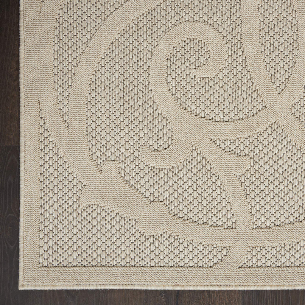 Details: Can a rug sturdy enough for both indoor and outdoor use also be chic and attractive? For sure, if it’s from the Cozumel Collection. These durable and fade-resistant area rugs are ideal for the casual lifestyle and work just as well in covered outdoor locations such as patio or porch as they do in your living room, family room or other favorite spot. Distinguished by their high-low loop pile, Cozumel area rugs take a visual cue from hand-carved rugs but are easily affordable and designed to withstand wear. This contemporary collection ranges from linear and geometric to sprightly florals – all enhanced by dimensional pile in today’s most coveted neutral tones. Decorating is easy (and fun!) with the casual chic of textural Cozumel, power-loomed in modern poly-fibers. Soft, creamy elegance gives this the curvaceous Palamos area rug a look of subtle sophistication. Bold geometric lines swirl across it, in a lively diamond-and-curlicue design. Texturally enhanced with high-low pile, in a rich double-cream palette.