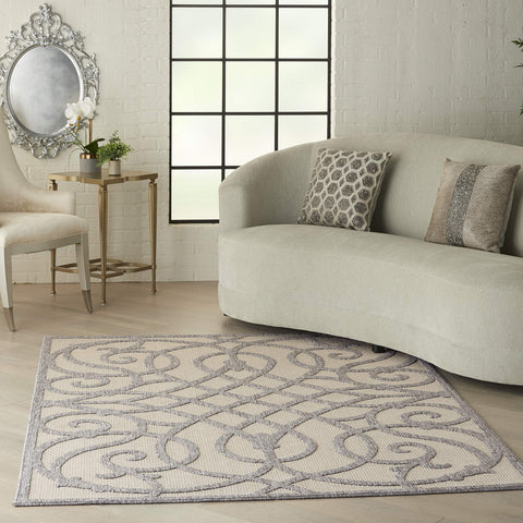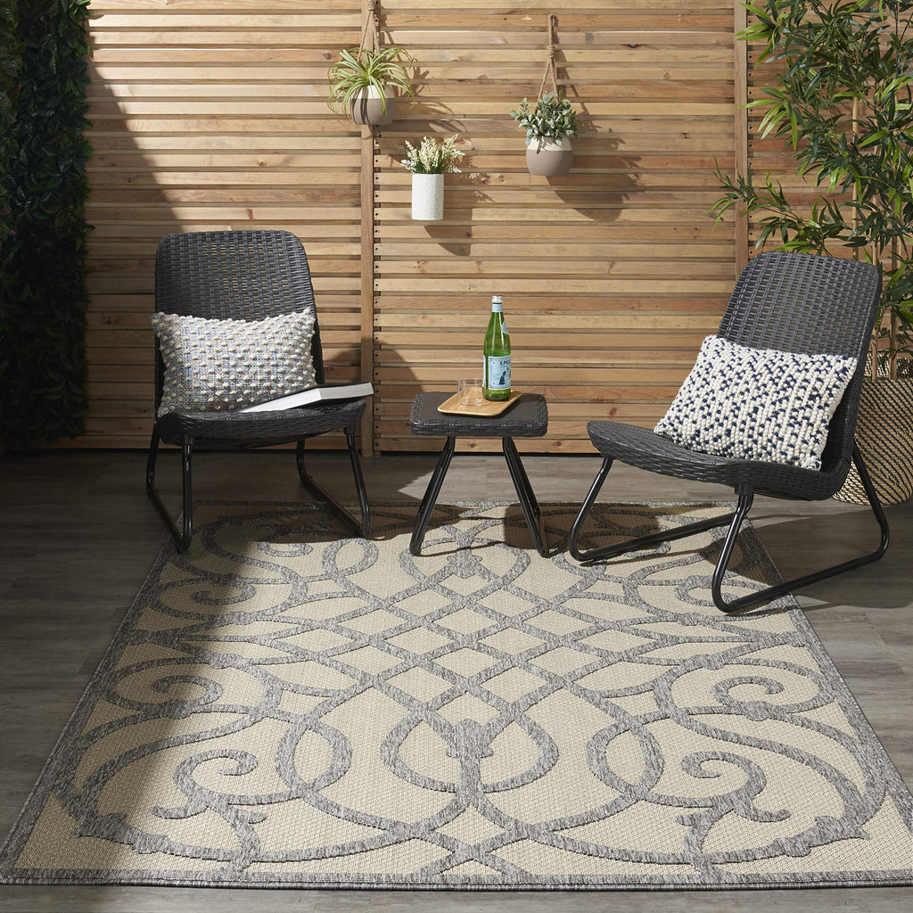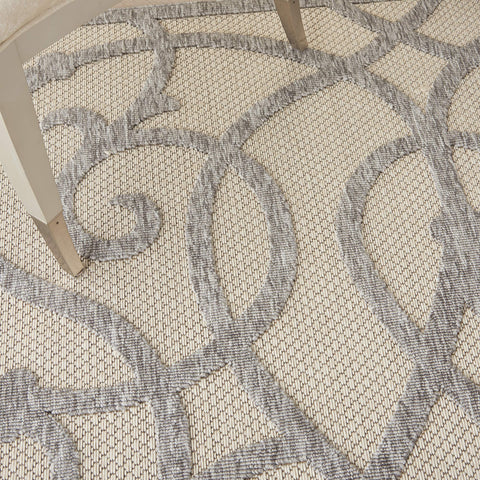 Details: Can a rug sturdy enough for both indoor and outdoor use also be chic and attractive? For sure, if it’s from the Palamos Collection. These durable and fade-resistant area rugs are ideal for the casual lifestyle and work just as well in covered outdoor locations such as patio or porch as they do in your living room, family room or other favorite spot. Distinguished by their high-low pile, Palamos area rugs take a visual cue from hand-carved rugs but are easily affordable and designed to withstand wear. This contemporary collection ranges from linear and geometric to sprightly florals – all enhanced by dimensional pile in today’s most coveted neutral tones. Decorating is easy (and fun!) with the casual chic of textural Palamos, power-loomed in modern poly-fibers. Enliven your home or special outdoor space with the curve appeal of this Palamos area rug! Bold geometric lines swirl across it, in a lively diamond-and-curlicue design. Texturally enhanced with high-low pile, in a fresh neutral colorway of dove grey on cream.