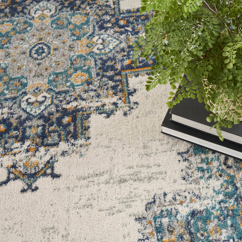 Color: Ivory/Grey/Blue