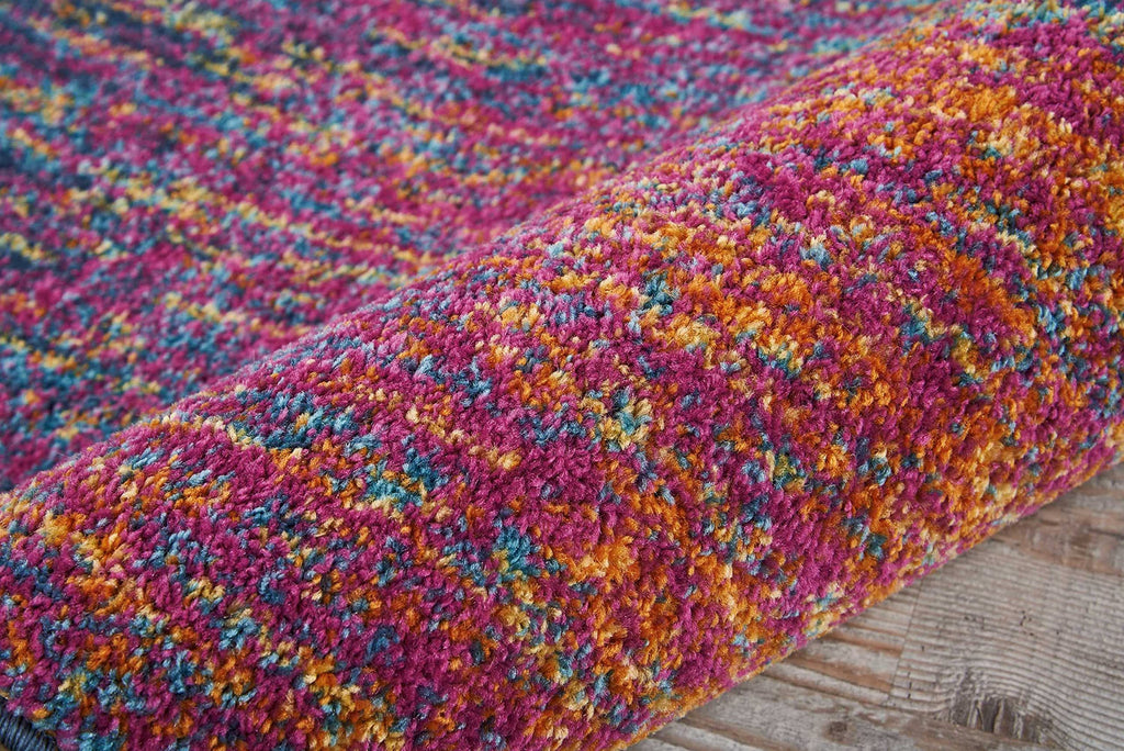 Details: Capture a rainbow and bring it home with this radiant area rug from the Passion Collection. Its slender striations flow across the room like rays of light. The dynamic multi-color palette in a striking medley of fuchsia, yellow and teal brings warmth and vitality into the contemporary room.