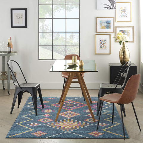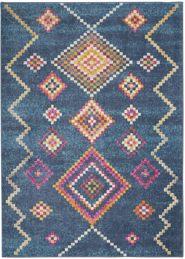 Details: Rich, seductive color draws you into the plush beauty of the Passion Collection. These fantastic florals and dramatic geometric designs meld elements of classic Persian motifs with a bohemian sensibility. Woven from polypropylene fibers on state-of-the-art power looms, this collection of area rugs combines thick, comfortable pile with an easy-care approach. Advanced overdye techniques create an exciting patina effect in shades of pink, blue, and orange. Live a more colorful life with Passion in your home! This exciting, colorful area rug embodies the special appeal of the Passion Collection. Its rich, deep indigo ground makes the tribal-inspired diamond pattern sparkle in bright tones of fuschia and tangerine. Power-loomed of polypropylene fibers for ease-of-care in a low-shed, borderless, cut-pile rug.