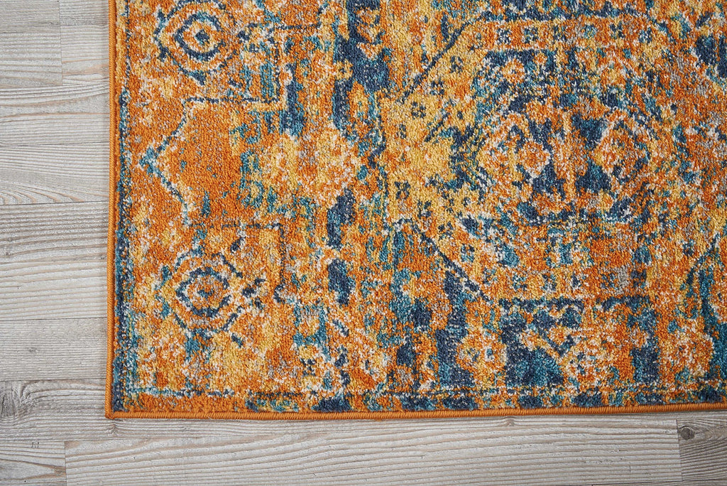 Details: Rich, lush, seductive color draws you in to the plush beauty of the lovely Passion Collection. If you thrill to the pleasures of beautifying your home, you'll find Passion area rugs simply irresistible. These fantastic florals, stunning abstracts and dramatic geometric designs meld elements of classic Persian motifs with a modern sensibility. Woven of polypropylene fibers on state-of-the-art powerlooms, this collection of area rugs combines thick, comfortable pile with an easy-care approach. Advanced overdye techniques create an exciting patina effect. Live a more colorful life with Passion in your home! Visual excitement will fill the room with the selection of this superb runner rug from the Passion Collection. Its strong geometric design makes a bold statement of confidence, softened by special overdye techniques that create the look of a gently faded antique. Its gleaming palette of sunny gold and rich teal blue affirms the fact that you have found a treasure.