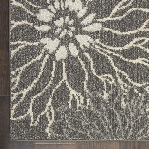 Details: Rich, lush, seductive color draws you in to the plush beauty of the lovely Passion Collection. If you thrill to the pleasures of beautifying your home, you'll find Passion area rugs simply irresistible. These fantastic florals, stunning abstracts and dramatic geometric designs meld elements of classic Persian motifs with a modern sensibility. Woven of polypropylene fibers on state-of-the-art powerlooms, this collection of area rugs combines thick, comfortable pile with an easy-care approach. Advanced overdye techniques create an exciting patina effect. Live a more colorful life with Passion in your home! Fabulous oversized florals capture the Wow! factor in this Passion area rug. Its contemporary flair features a palette of soft charcoal and ivory, enlivened with touches of bright turquoise blue. Soft and inviting, it's the ideal expression of modern comfort in any room.