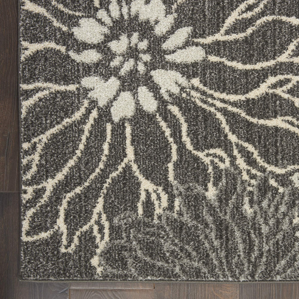 Details: Rich, lush, seductive color draws you in to the plush beauty of the lovely Passion Collection. If you thrill to the pleasures of beautifying your home, you'll find Passion area rugs simply irresistible. These fantastic florals, stunning abstracts and dramatic geometric designs meld elements of classic Persian motifs with a modern sensibility. Woven of polypropylene fibers on state-of-the-art powerlooms, this collection of area rugs combines thick, comfortable pile with an easy-care approach. Advanced overdye techniques create an exciting patina effect. Live a more colorful life with Passion in your home! Fabulous oversized florals capture the Wow! factor in this Passion area rug. Its contemporary flair features a palette of soft charcoal and ivory, enlivened with touches of bright turquoise blue. Soft and inviting, it's the ideal expression of modern comfort in any room.