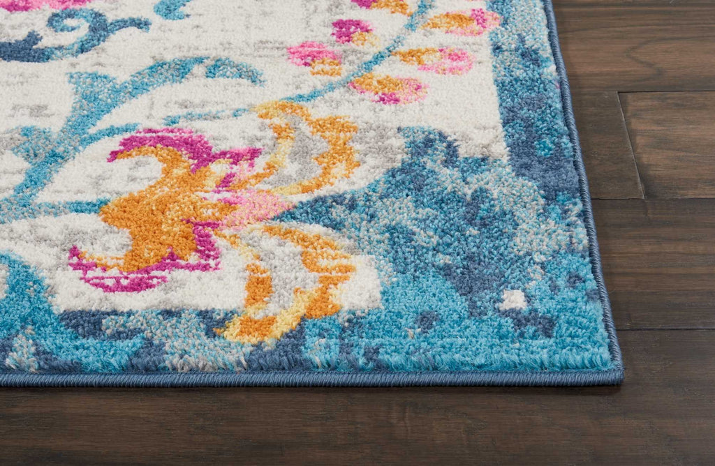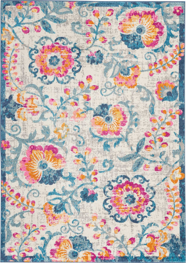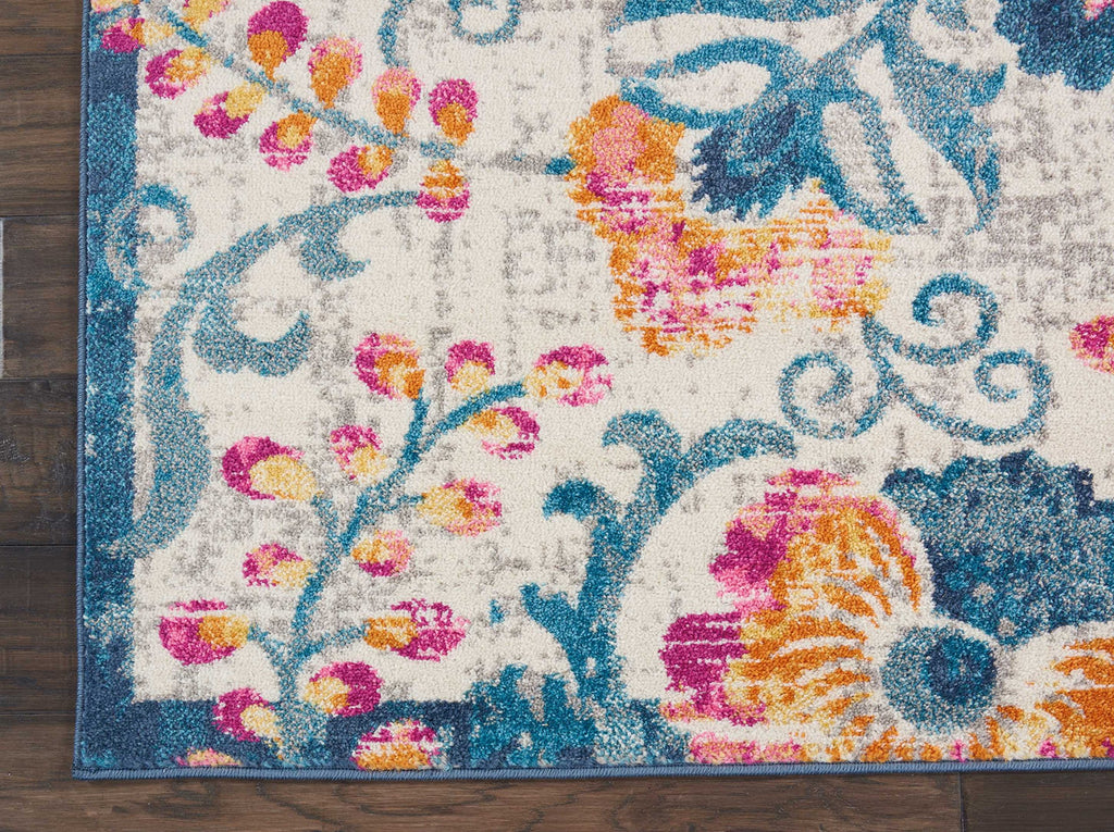 Details: Rich, lush, seductive color draws you in to the plush beauty of the lovely Passion Collection. If you thrill to the pleasures of beautifying your home, you'll find Passion area rugs simply irresistible. These fantastic florals, stunning abstracts and dramatic geometric designs meld elements of classic Persian motifs with a modern sensibility. Woven of polypropylene fibers on state-of-the-art powerlooms, this collection of area rugs combines thick, comfortable pile with an easy-care approach. Advanced overdye techniques create an exciting patina effect. Live a more colorful life with Passion in your home! Oversized tropical blooms and vines burst across this Passion Collection rug, with rich pink and orange petals on a subdued but elegant field of pale grey. Light accents provide a distressed effect to create a statement rug combining exotic designs with brilliant modern colors.