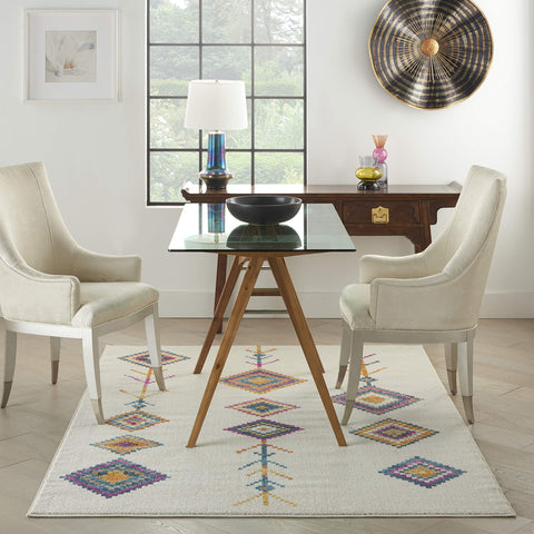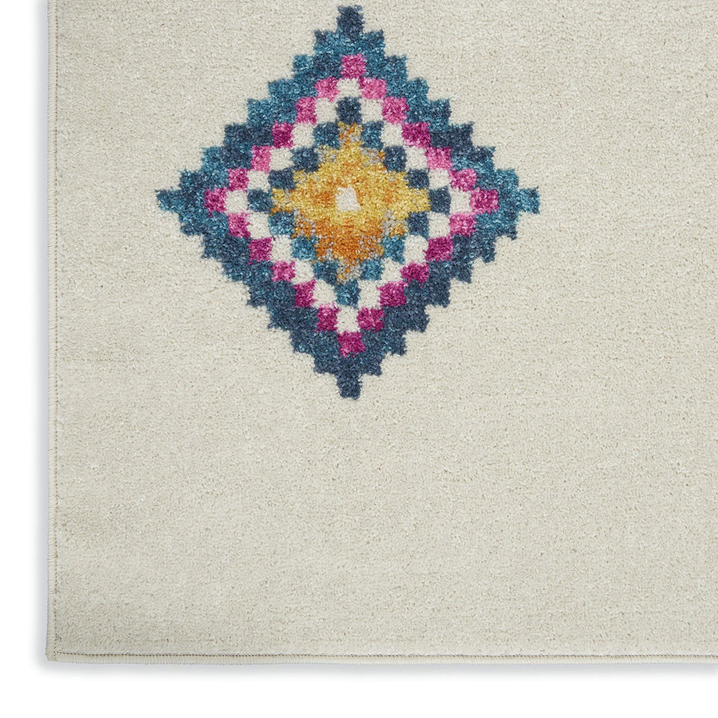 Details: Rich, seductive color draws you into the plush beauty of the Passion Collection. These fantastic florals and dramatic geometric designs meld elements of classic Persian motifs with a bohemian sensibility. Woven from polypropylene fibers on state-of-the-art power looms, this collection of area rugs combines thick, comfortable pile with an easy-care approach. Advanced overdye techniques create an exciting patina effect in shades of pink, blue, and orange. Live a more colorful life with Passion in your home! The Passion Collection brings you a unique and fresh look in this tribal pattern area rug. Its diamond and arrow motifs pop in colorful beauty on the soft white ground. Pull your contemporary, modern or ethnic room together with this delightfully easy-care rug.