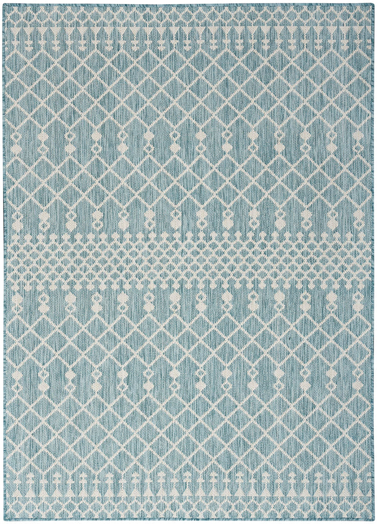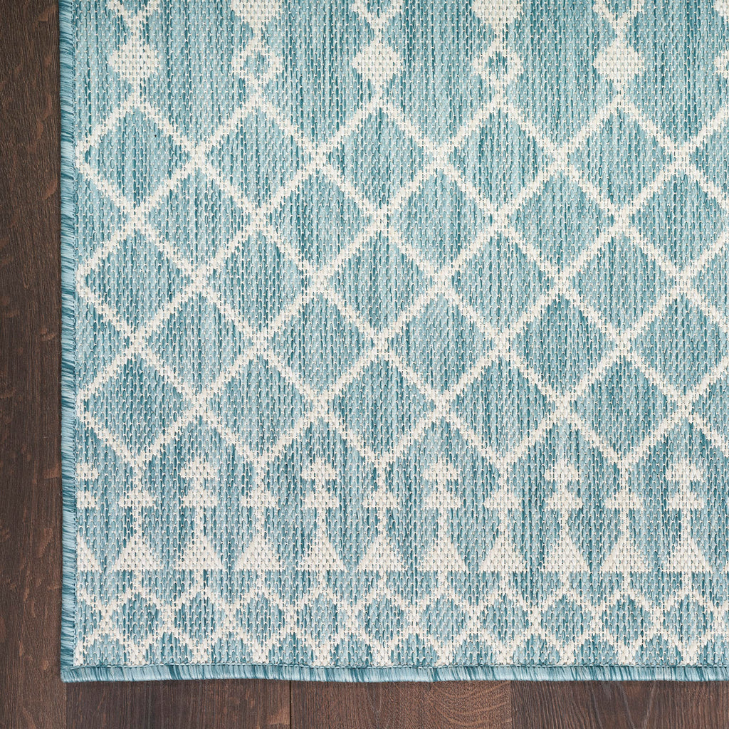Details: Upgrade your outdoor lifestyle with the rich, textural appeal of a Positano outdoor rug. These flatweave rugs are elegant enough for your living room or dining room, yet durable enough to enjoy outdoors on your porch, patio, or deck! Choose from a spectrum of versatile neutrals and colorful rugs that display exciting variations thanks to the space-dyed, striated yarns. Machine-made from polypropylene for easy cleaning: just hose rinse and air dry. Bring boho style to with a touch of modern flair to your space with this blue outdoor rug from the Positano Collection. The classic Moroccan trellis pattern is woven onto a multi-toned ground that offers intriguing visual contrast that you can roll out just about anywhere – from the patio, deck, and balcony to the living room, dining room, and kitchen. This flatweave rug is machine-made from durable polypropylene fibers that are easy to clean: just hose rinse and air dry