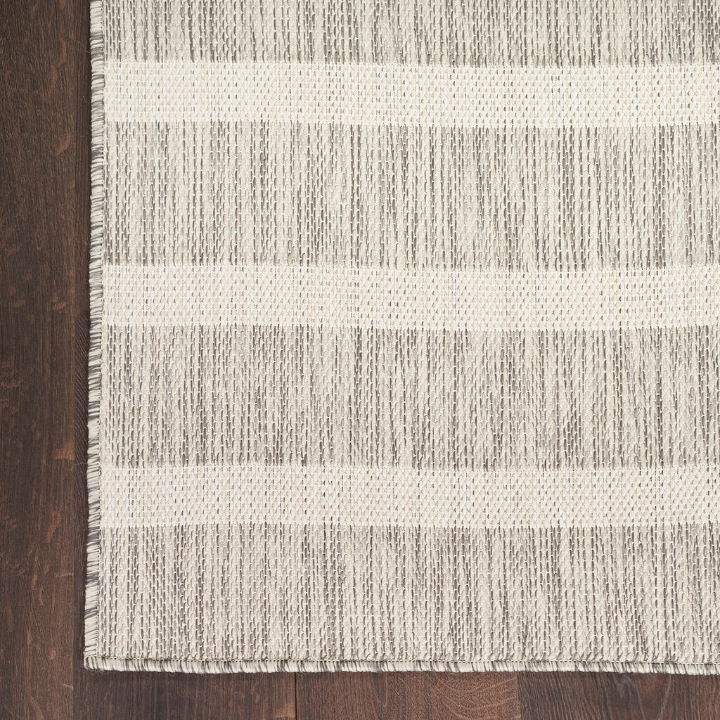 Details: Upgrade your outdoor lifestyle with the rich, textural appeal of a Positano outdoor rug. These flatweave rugs are elegant enough for your living room or dining room, yet durable enough to enjoy outdoors on your porch, patio, or deck! Choose from a spectrum of versatile neutrals and colorful rugs that display exciting variations thanks to the space-dyed, striated yarns. Machine-made from polypropylene for easy cleaning: just hose rinse and air dry. Invite coastal-inspired charm to your home with this grey striped outdoor rug from the Positano Collection. The space-dyed yarns add nuanced variations in color, while the flat weave construction makes placement a breeze. Roll this modern rug onto your patio, deck, or porch to create a cozy and casual conversation area, or add to your living room, dining room, or kitchen for low-maintenance yet eye-catching style. Machine-made from polypropylene yarns that are durable and easy to clean: simply hose rinse and air dry.