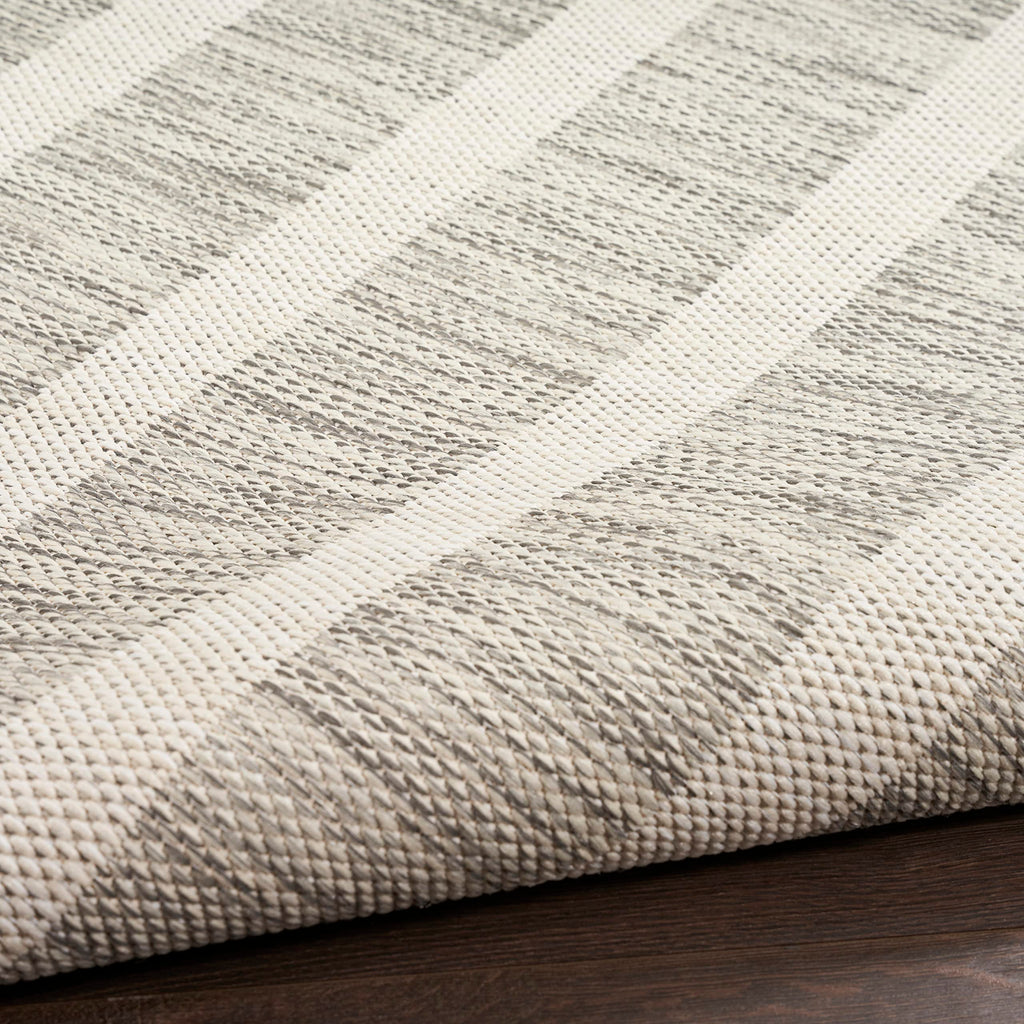 Details: Upgrade your outdoor lifestyle with the rich, textural appeal of a Positano outdoor rug. These flatweave rugs are elegant enough for your living room or dining room, yet durable enough to enjoy outdoors on your porch, patio, or deck! Choose from a spectrum of versatile neutrals and colorful rugs that display exciting variations thanks to the space-dyed, striated yarns. Machine-made from polypropylene for easy cleaning: just hose rinse and air dry. Invite coastal-inspired charm to your home with this grey striped outdoor rug from the Positano Collection. The space-dyed yarns add nuanced variations in color, while the flat weave construction makes placement a breeze. Roll this modern rug onto your patio, deck, or porch to create a cozy and casual conversation area, or add to your living room, dining room, or kitchen for low-maintenance yet eye-catching style. Machine-made from polypropylene yarns that are durable and easy to clean: simply hose rinse and air dry.