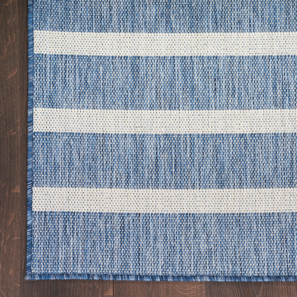- COASTAL STYLE: This striped outdoor rug brings breezy, laid-back charm to your space