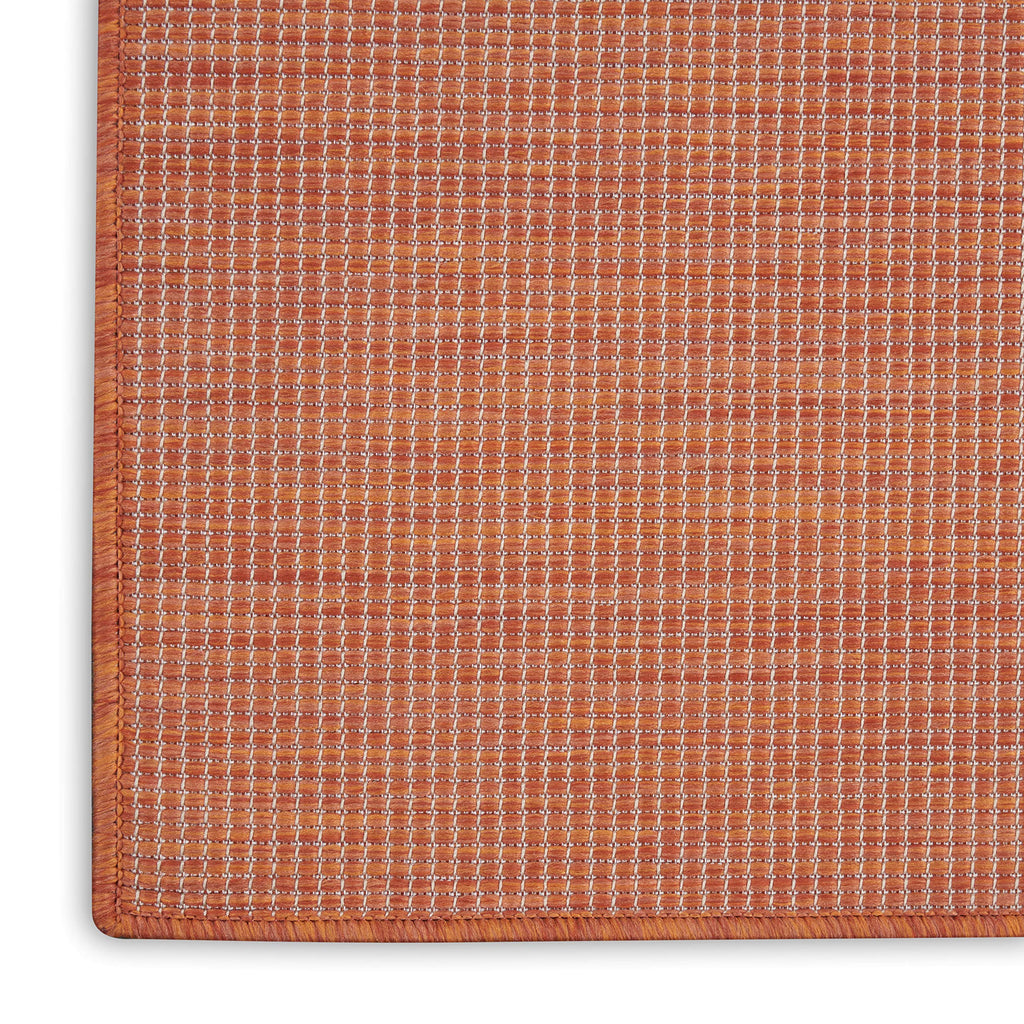 Details: Upgrade your outdoor lifestyle with the rich, textural appeal of a Positano outdoor rug. These flatweave rugs are elegant enough for your living room or dining room, yet durable enough to enjoy outdoors on your porch, patio, or deck! Choose from a spectrum of versatile neutrals and colorful rugs that display exciting variations thanks to the space-dyed, striated yarns. Machine-made from polypropylene for easy cleaning: just hose rinse and air dry. The appealing texture of this flatweave Positano outdoor rug is made beautifully visible by the space-dyed color variations of its striated yarns. Machine-made from durable polypropylene fibers for easy-cleaning. Presented in terracotta orange, this versatile design easily fits in a variety of spaces – from your outdoor patio conversation area to your living room, dining room, or kitchen.