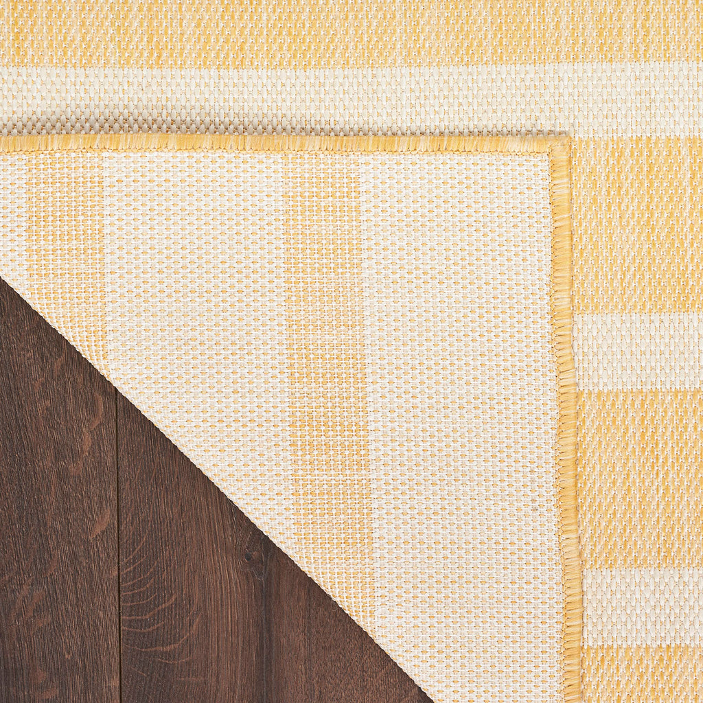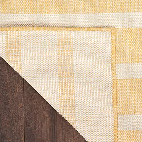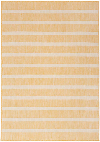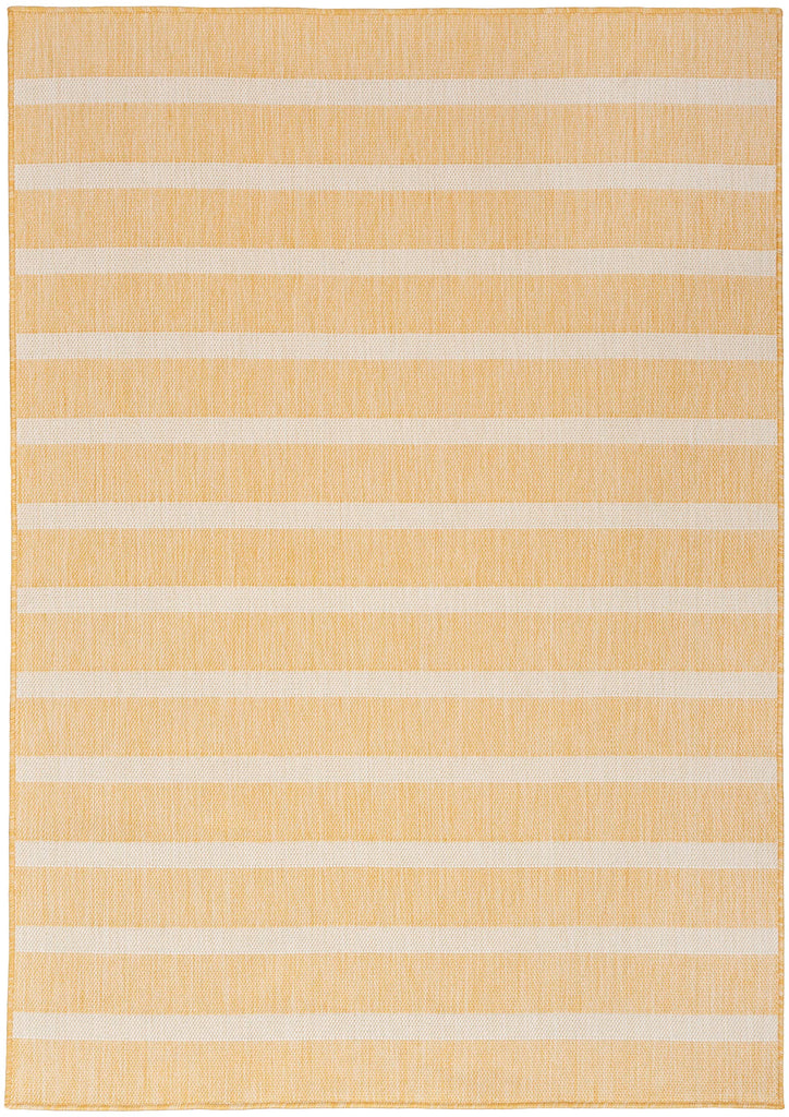 Details: Upgrade your outdoor lifestyle with the rich, textural appeal of a Positano outdoor rug. These flatweave rugs are elegant enough for your living room or dining room, yet durable enough to enjoy outdoors on your porch, patio, or deck! Choose from a spectrum of versatile neutrals and colorful rugs that display exciting variations thanks to the space-dyed, striated yarns. Machine-made from polypropylene for easy cleaning: just hose rinse and air dry. Invite coastal-inspired charm to your home with this yellow striped outdoor rug from the Positano Collection. The space-dyed yarns add nuanced variations in color, while the flat weave construction makes placement a breeze. Roll this modern rug onto your patio, deck, or porch to create a cozy and casual conversation area, or add to your living room, dining room, or kitchen for low-maintenance yet eye-catching style. Machine-made from polypropylene yarns that are durable and easy to clean: simply hose rinse and air dry.