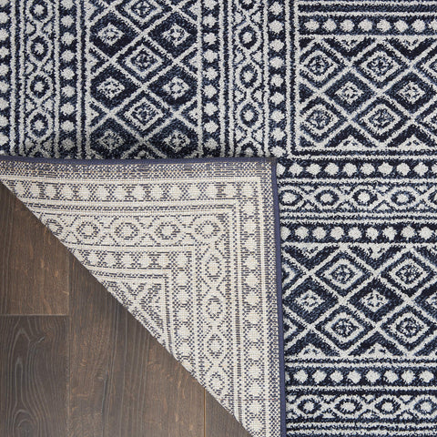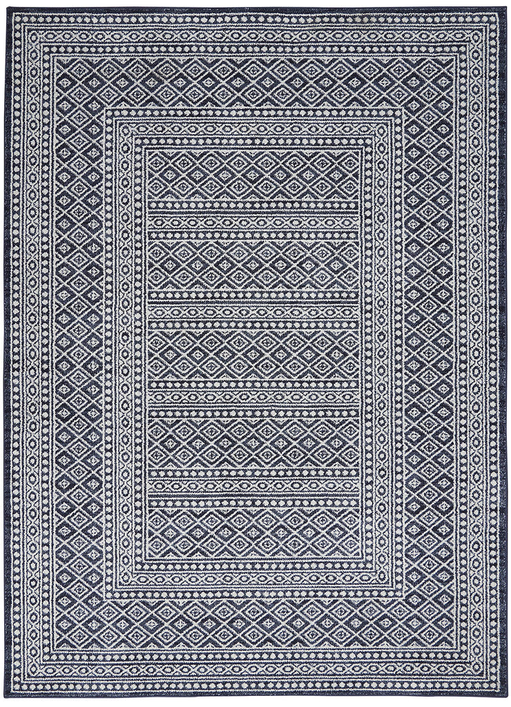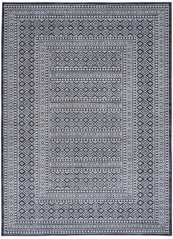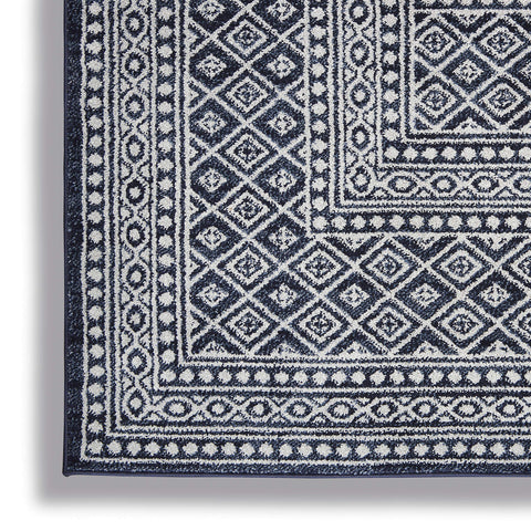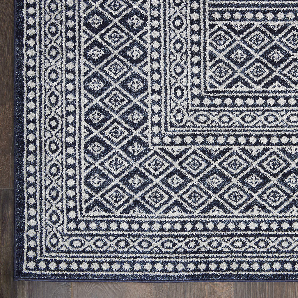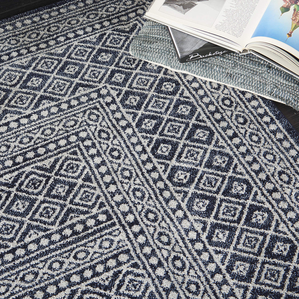 Details: With soft, neutral palettes and mono-tonal colorways, the Royal Moroccan collection brings simplicity and serenity to the modern lifestyle. These handsome rugs feature intricate geometric patterns based on Moroccan tribal designs. They are presented here in easy-living polypropylene fibers, power loomed for durability and lasting beauty. As soft and supple as they are practical, Royal Moroccan area rugs are ideal for a wide array of decorating styles, from traditional to contemporary bohemian. Serene, effortless elegance is yours with this modern area rug. It features an intricate geometric pattern in hues of navy blue and grey inspired by early Moroccan artistry. Constructed of easy-care 100-percent polypropylene fibers that are ideal in high traffic areas such as your bedroom, living room, dining room, kitchen, or entryway.