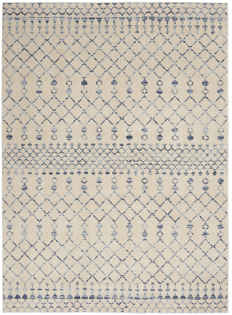 Details: With soft, neutral palettes and mono-tonal colorways, the Royal Moroccan collection brings simplicity and serenity to the modern lifestyle. These handsome rugs feature intricate geometric patterns based on Moroccan tribal designs. They are presented here in easy-living polypropylene fibers, power loomed for durability and lasting beauty. As soft and supple as they are practical, Royal Moroccan area rugs are ideal for a wide array of decorating styles, from traditional to contemporary bohemian. The superb subtlety of blue on beige, gently faded for vintage appeal, gives this Royal Moroccan area rug special appeal. The lively, geometric tribal pattern adds visual excitement. Pull the room together with this handsome and versatile rug, soft and livable in easy-care fibers.