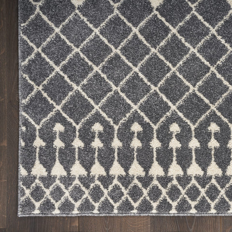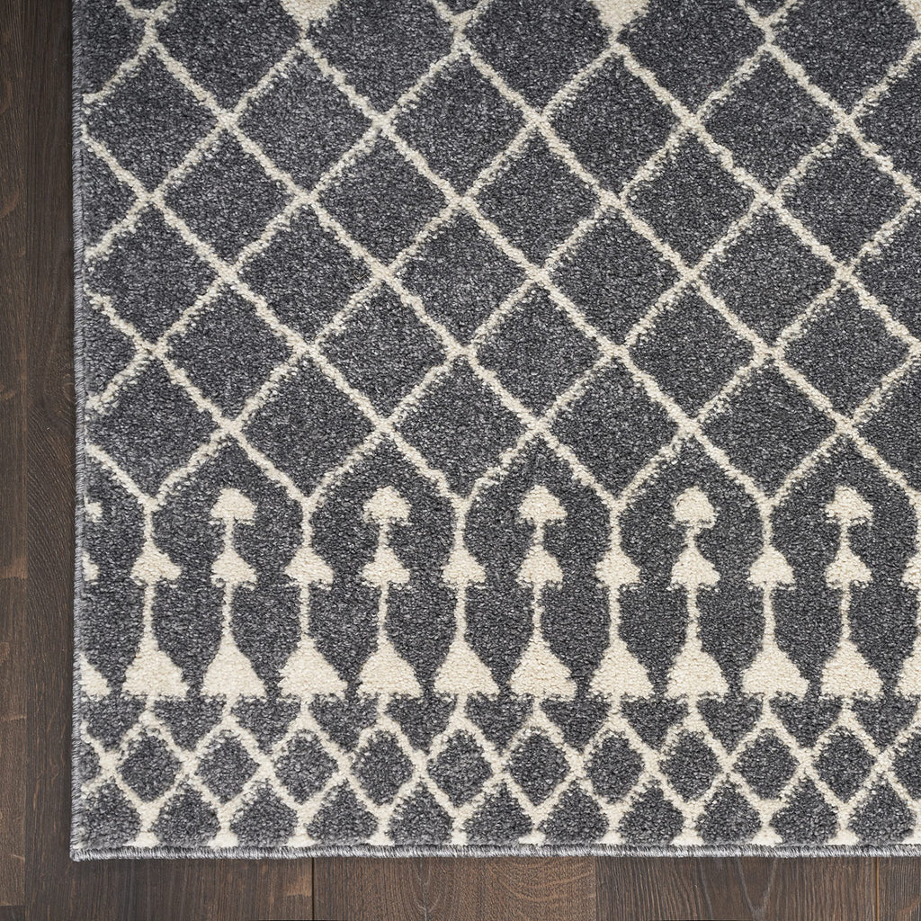 Details: With soft, neutral palettes and mono-tonal colorways, the Royal Moroccan collection brings simplicity and serenity to the modern lifestyle. These handsome rugs feature intricate geometric patterns based on Moroccan tribal designs. They are presented here in easy-living polypropylene fibers, power loomed for durability and lasting beauty. As soft and supple as they are practical, Royal Moroccan area rugs are ideal for a wide array of decorating styles, from traditional to contemporary bohemian. Global inspiration takes a contemporary twist with this bohemian rug from the Royal Moroccan Collection. With a delightfully soft yet easy-to-clean texture great for pets, kids, and spill-prone areas, the tribal geometric pattern adds an inviting feel to your living room, dining room, or bedroom. Royal Moroccan’s charcoal grey and white design, as well as its vintage fade, make it an excellent choice for both modern boho and farmhouse decor.