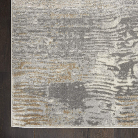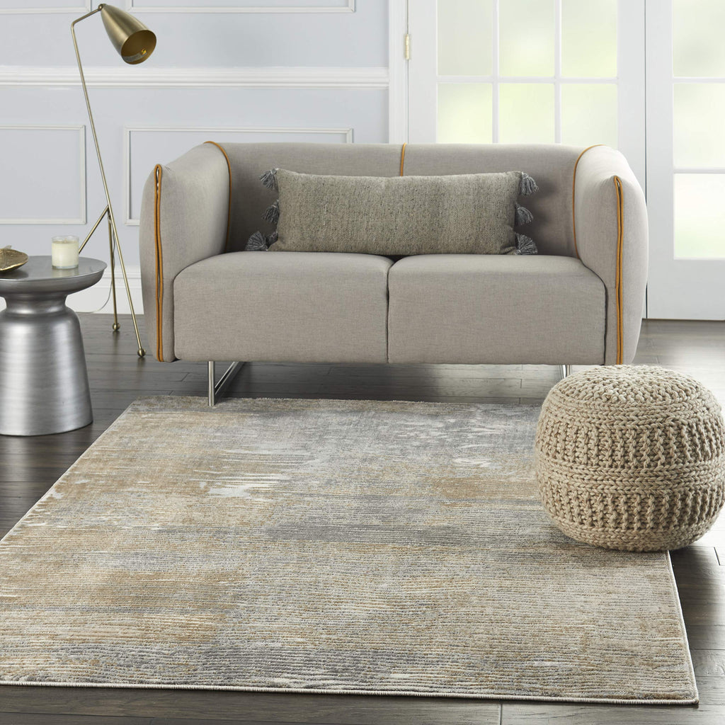 Details: Sumptuous shadings of cool neutral tones in captivating abstract designs define the appeal of the Solace Collection. A high-low pile offers inviting texture, while the erased patterns have a fashion-forward, distressed look. Created for easy living and the casual lifestyle, these contemporary, borderless area rugs work beautifully throughout the home, from living rooms and dining rooms to family rooms, bedroom and study. Power loomed in low-shed polyblend fibers. High-low pile in rhythmic ridges gives exceptional texture and tactile appeal to this Solace Collection area rug. It fills any room with an aura of sumptuous softness in blended tones of beige and grey. Borderless design, with distressed finish for casual fashion flair.