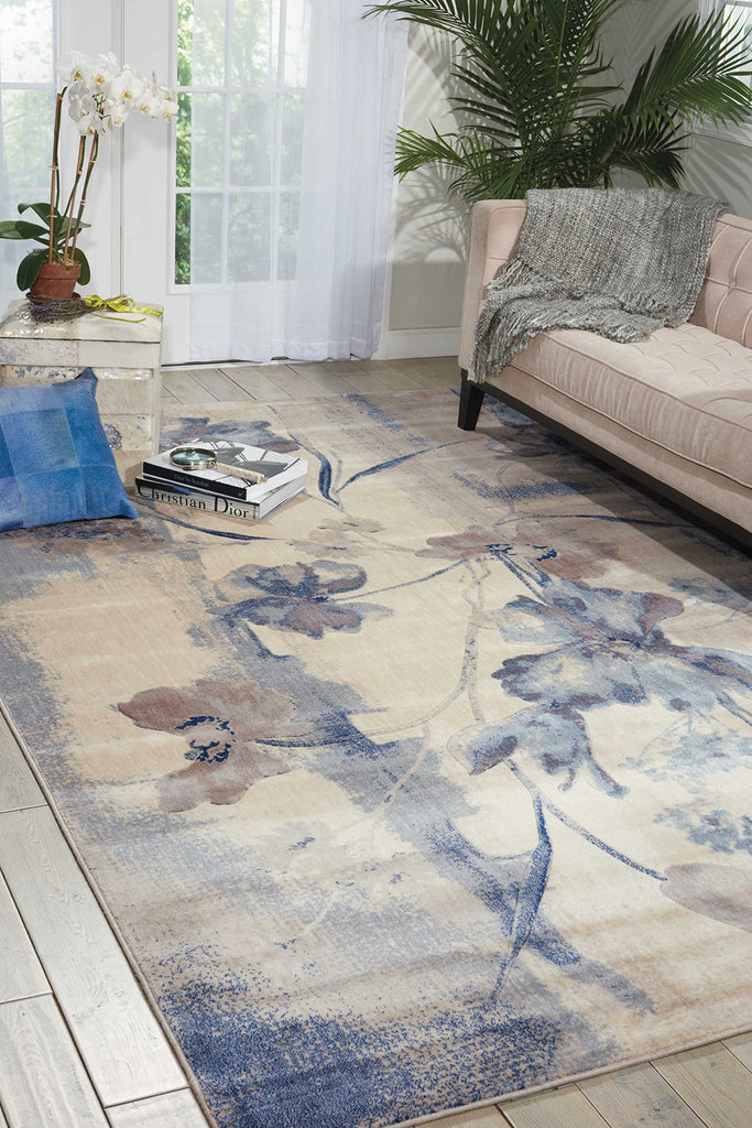 Details: Sophisticated color and incomparable texture define this unique collection of high-fashion accent and area rugs. Each rug is made exclusively from Nourtex’s unique Opulon™ fiber on state-of-the-art Wilton looms for superlative softness and durability. A wealth of fashion-forward color palettes warmly are enhanced by a shaded abrash effect that evokes the vintage appeal of the finest handmade carpets. Subtle accents of hand carving impart an elegant sense of dimension to the feature elements of each signature design. Daydreams seem to take form in this impressionistic display of irises and tulips, in abrash tones of tan, blue, taupe, and soft blue. With a stunning sheen and luxurious pile, this contemporary rug captivates completely.