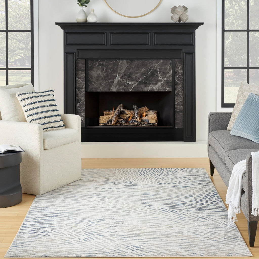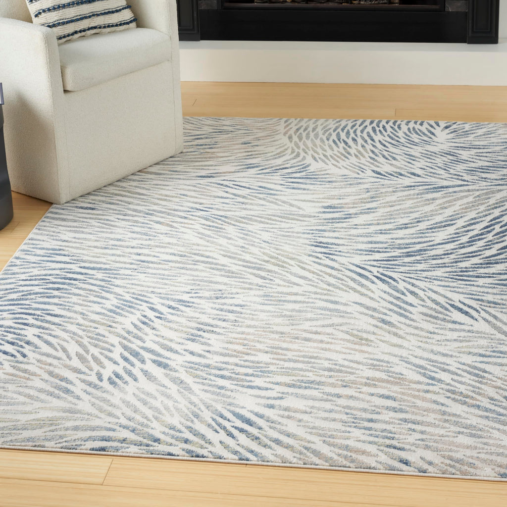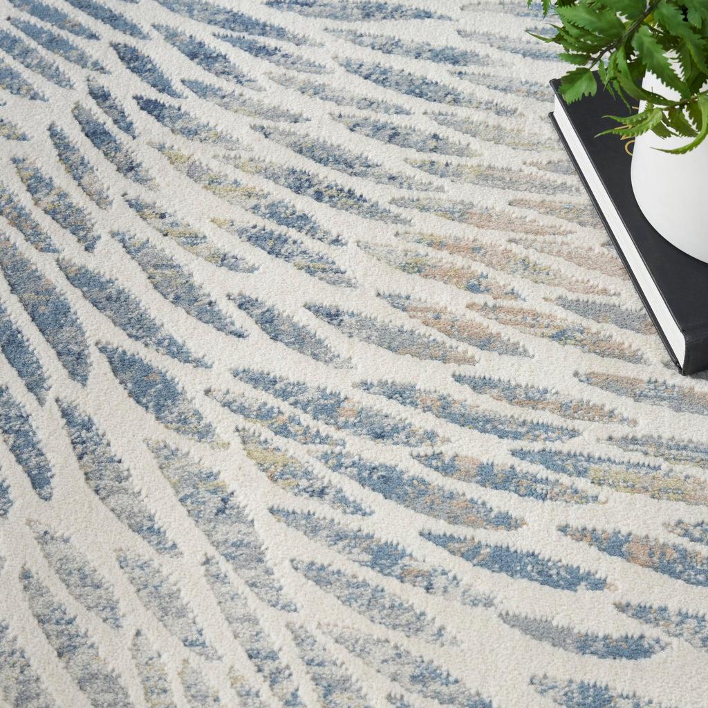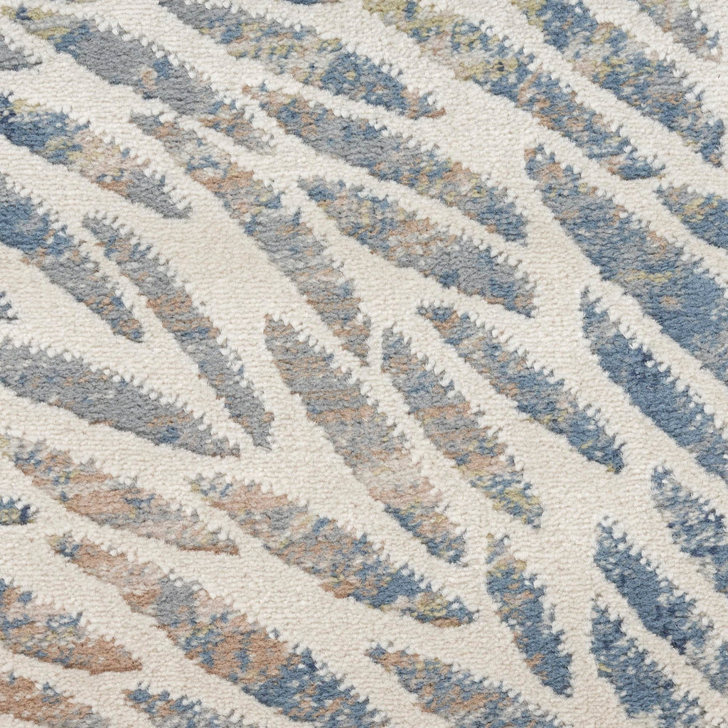 Details: Like a breath of fresh air, the Splendid Collection of abstract rugs revitalizes your space with new energy. Each style creates a sense of movement and depth designed to draw compliments from friends and family. Choose from a range of versatile neutrals to match your personal style. Machine-made from a blend of polyester and polypropylene yarns with subtle textural variations. Invite a captivating sense of movement to your space with this abstract rug from the Splendid Collection. Swirling leaves in blue and grey, interspersed with tan and beige tonal variations, create a stunning focal point for your living room, bedroom, kitchen, or hallway. Machine-made from a blend of polyester and polypropylene fibers with a subtle high-low texture that adds a nuanced layer of depth.