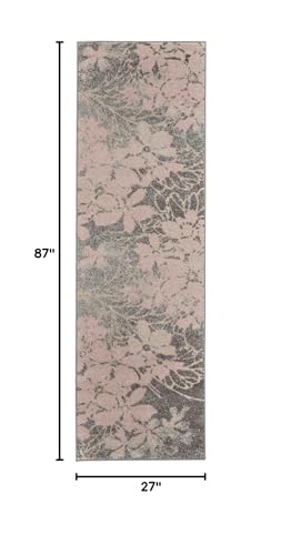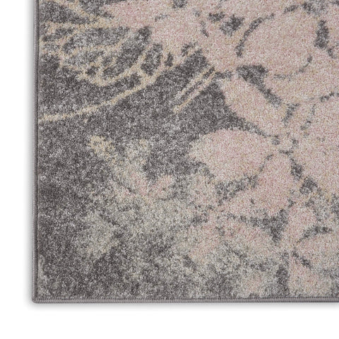 Details: Oversized floral patterns take on a mystical glow in this contemporary Tranquil Collection rug, with pale pink flower petals fading into an ombre grey background. Soft, easy-care fibers make this a versatile dose of botanical beauty anywhere in the home.