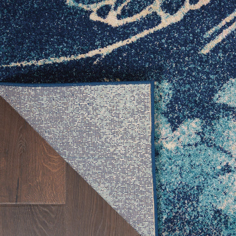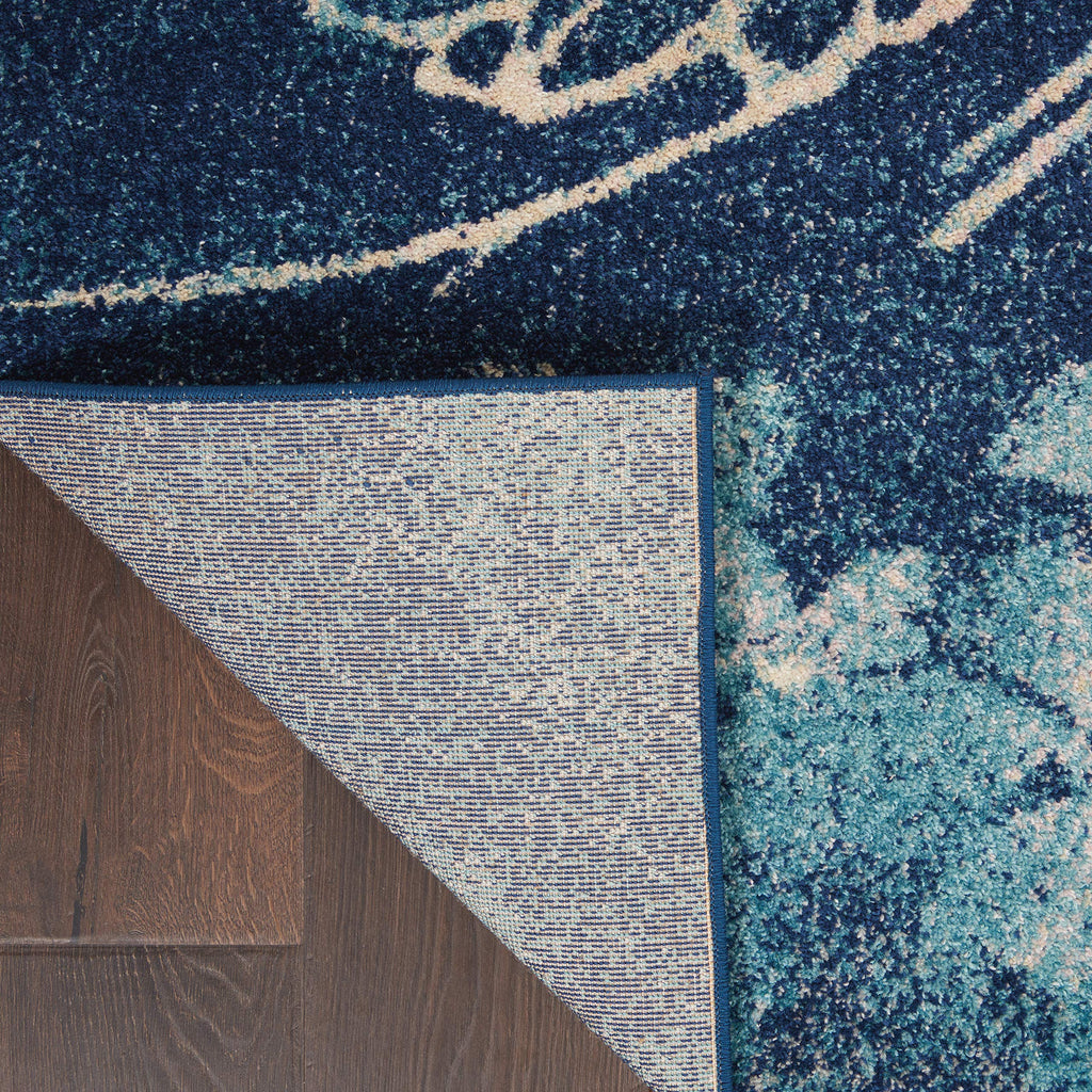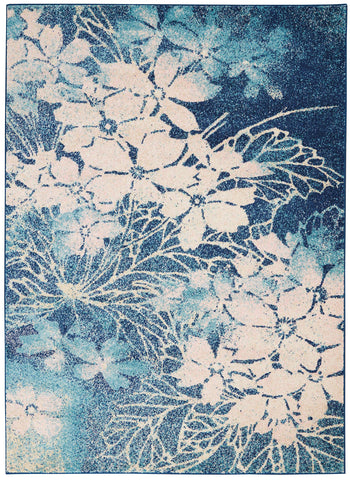 Details: Oversized floral patterns take on a mystical glow in this contemporary Tranquil Collection rug, with white flower petals fading into an ombre navy blue background. Soft, easy-care fibers make this a versatile dose of botanical beauty anywhere in the home.