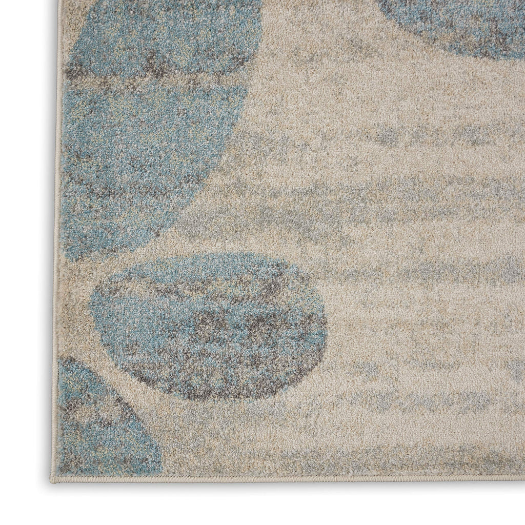 Details: This serene area rug from the Tranquility Collection presents a contemporary botanical design in a soft, modern palette with a color wash effect. Shades of ivory, light blue, and brown mingle in an artful arrangement of simple leaf and blossom shapes. As versatile as it is appealing.