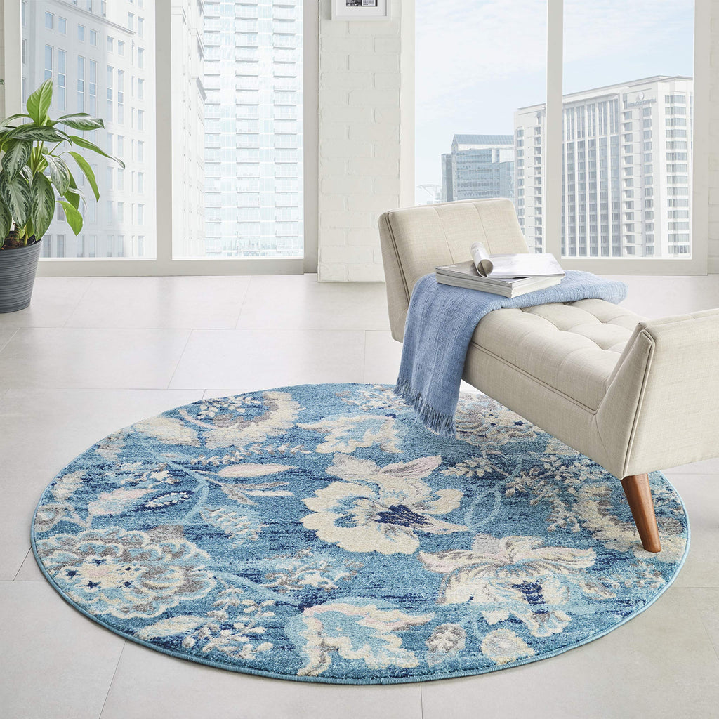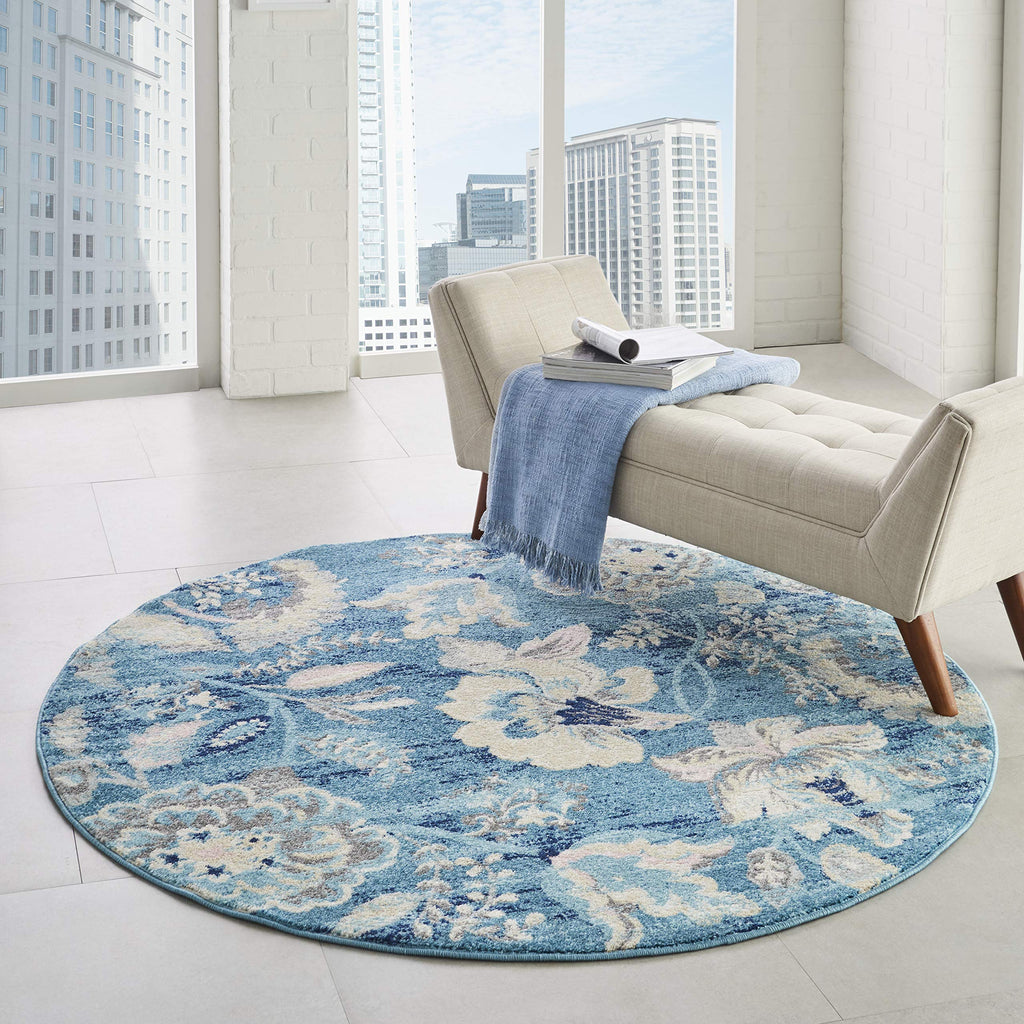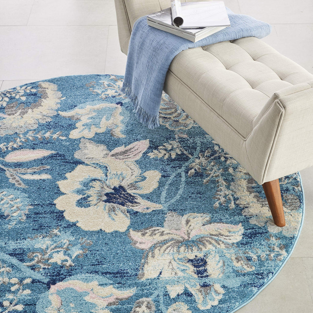 Details: Nourison's Tranquil Collection brings together a palette of soothing and elegant colors into an assortment of contemporary and traditional patterns, ranging from contemporary florals to intricate Persian and Kashan bordered medallion rugs. Each rug features a lush cut pile in easy-care fibers, with subtle abrash tones for touch of calming charm for any decor. An elegant and detailed floral motif makes this Tranquil Collection area rug an ideal choice to bring a French country aesthetic to any room. Its pleasing palette combines shades of turquoise and touches of pink detailing, in soft easy-care fibers.