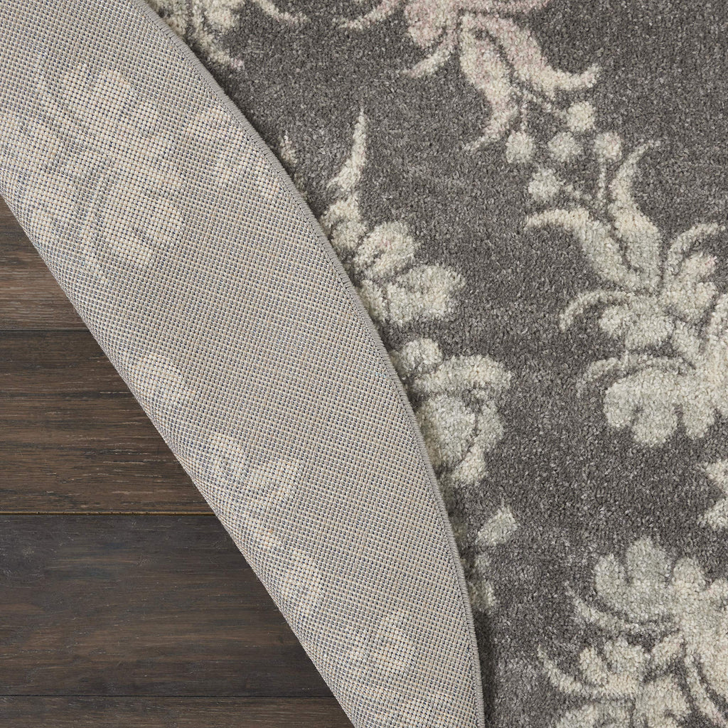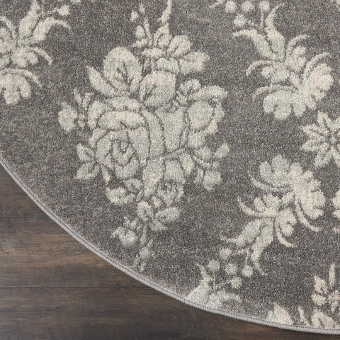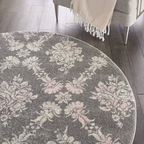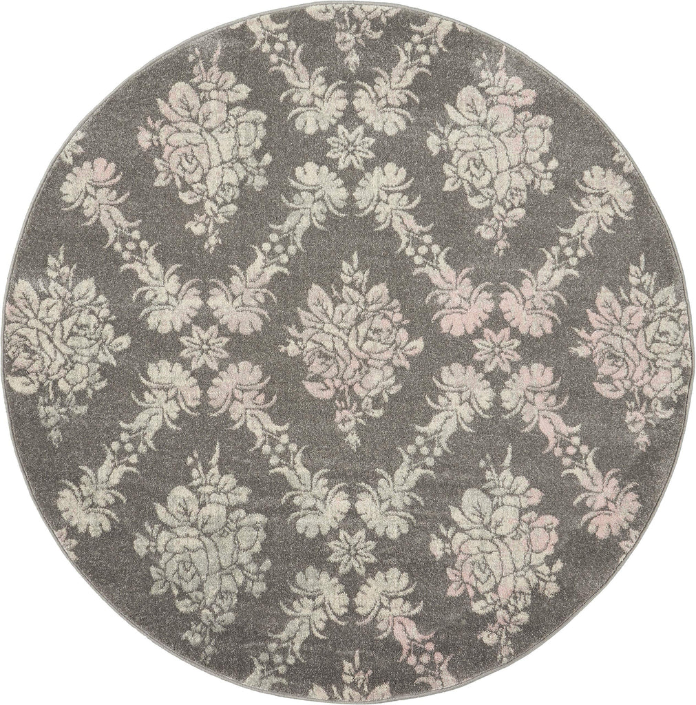 Details: The simple elegance of French Country design comes home in this charming repeat-pattern area rug from the Tranquil Collection. A floral lattice surrounds lush botanical swags on a grey field, creating a vintage look that’s enhanced by the softly faded pink and ivory designs.