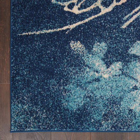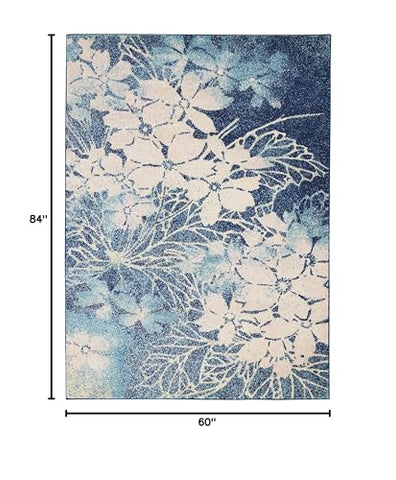 Details: Oversized floral patterns take on a mystical glow in this contemporary Tranquil Collection rug, with white flower petals fading into an ombre navy blue background. Soft, easy-care fibers make this a versatile dose of botanical beauty anywhere in the home.