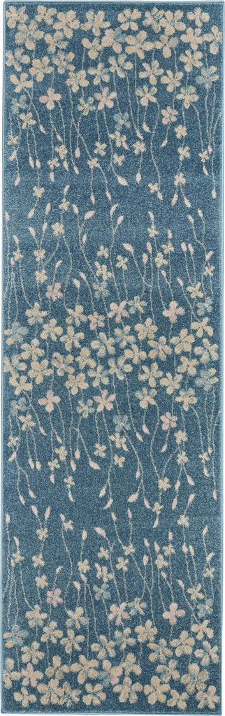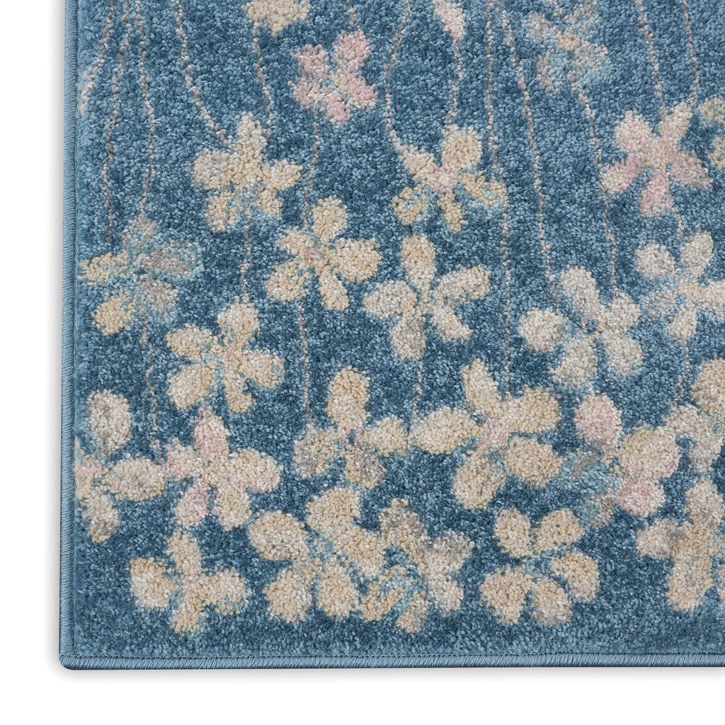 Details: Delicate flowers blow on a gentle breeze in this delightful botanical rug from the Tranquil Collection. Watercolor tones of pink and blue on a blue field create a marvelous sense of softness to bring a boho look to your unique decorating style.