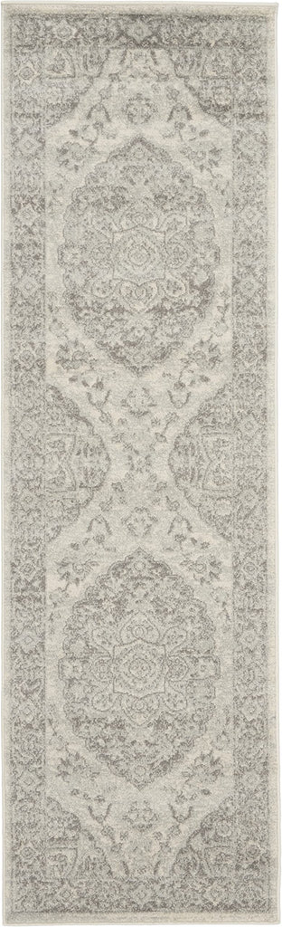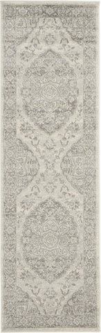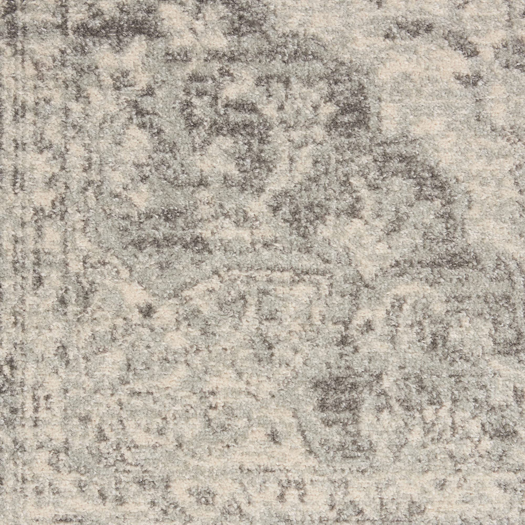 Details: Nourison's Tranquil Collection brings together a palette of soothing and elegant colors into an assortment of contemporary and traditional patterns, ranging from contemporary florals to intricate and Kashan bordered medallion rugs. Each rug features a lush cut pile in easy-care fibers, with subtle abrash tones for touch of calming charm for any decor. Rethink traditional with this intriguing rug design from the Tranquil Collection. The Oushak center-medallion style is expressed in the soft and subtle abrash tones of a soothing ivory-grey palette. It's a vintage look with contemporary appeal.