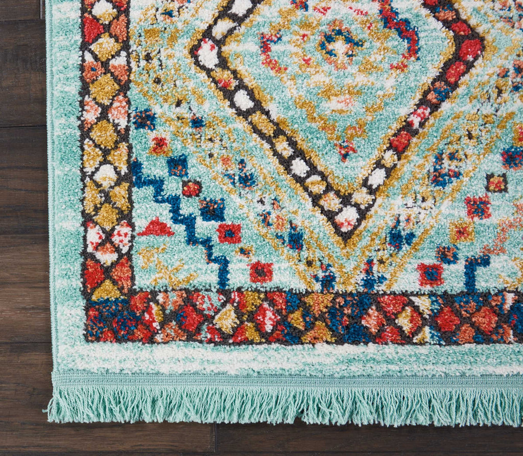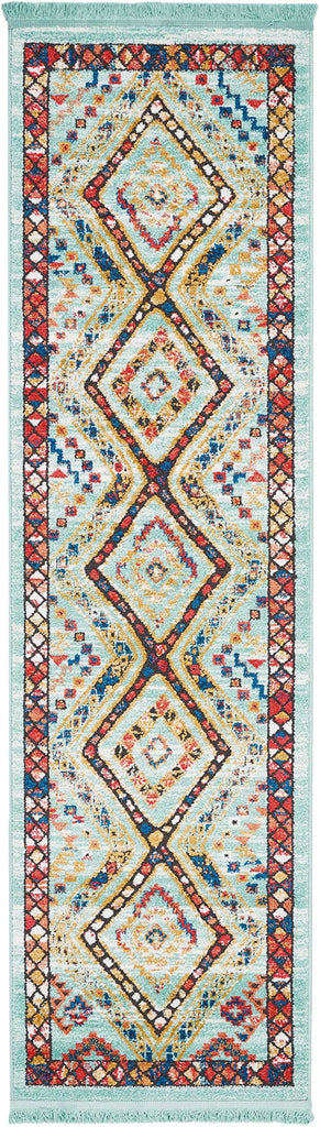 Details: Bold tribal designs infuse the exciting Tribal Decor Collection with color and culture. The bright transitional hues in these colorful tribal rugs imbue their vivid geometric designs with a sense of animation, and make a stunning color statement on white or colored grounds.Features Lively diamond shapes seem to quiver with animation in this vivid tribal Decor rug design. Traditional Navajo and tribal motifs and a stunning border complete the appeal of this Tribal Decor Collection area rug. Fringe Serged Edges Plush PileCollection: Tribal DecorStyle: TribalMaterial: 64% Polypropylene, 36% PolyesterColor: AquaShape: RunnerDesign Name: TRL02Construction: Machine WovenProduct Size: 2'2" x 7'9"Pile Height: 0.5Made in Turkey