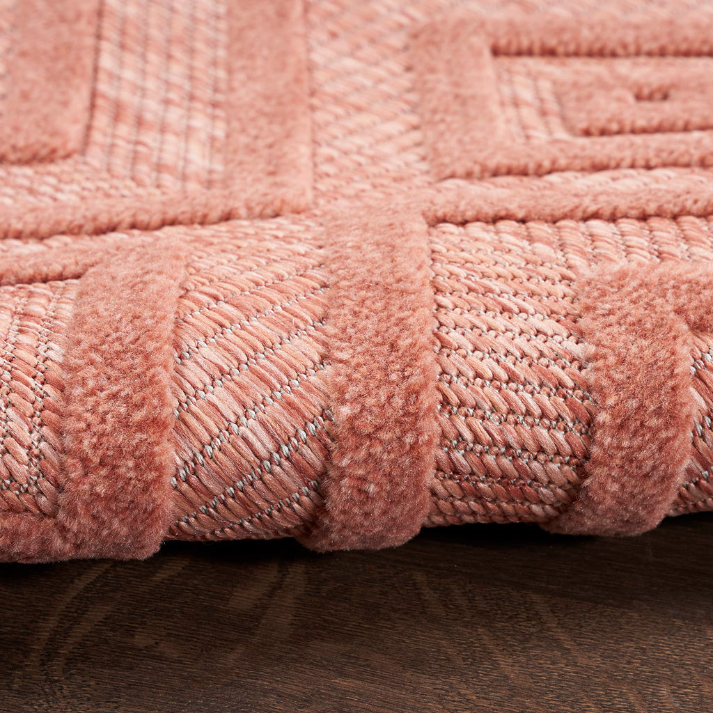 Details: Enhance your indoor or outdoor space with the contemporary appeal of an outdoor rug from the Nourison Versatile Collection. These dynamically textured rugs feature a flatwoven ground with raised designs that feel incredibly soft to the touch, adding an instant layer of depth to just about any space – from living room and dining room to patio, porch, or deck. Machine-made from a blend of durable polypropylene and polyester fibers that are easy to clean: just hose rinse and air dry. This coral orange Nourison Versatile Collection rug brings inviting style to your favorite indoor or outdoor space. With a raised diamond design in that stands out beautifully against its flatwoven ground, this outdoor rug enhances your space with delightful texture and modern appeal. Machine-made from durable, easy-to-clean fibers, Versatile is great for high-traffic areas inside the home as well as all seasons spent outdoors.