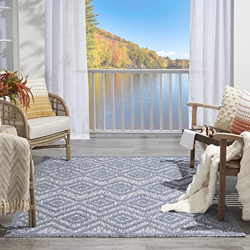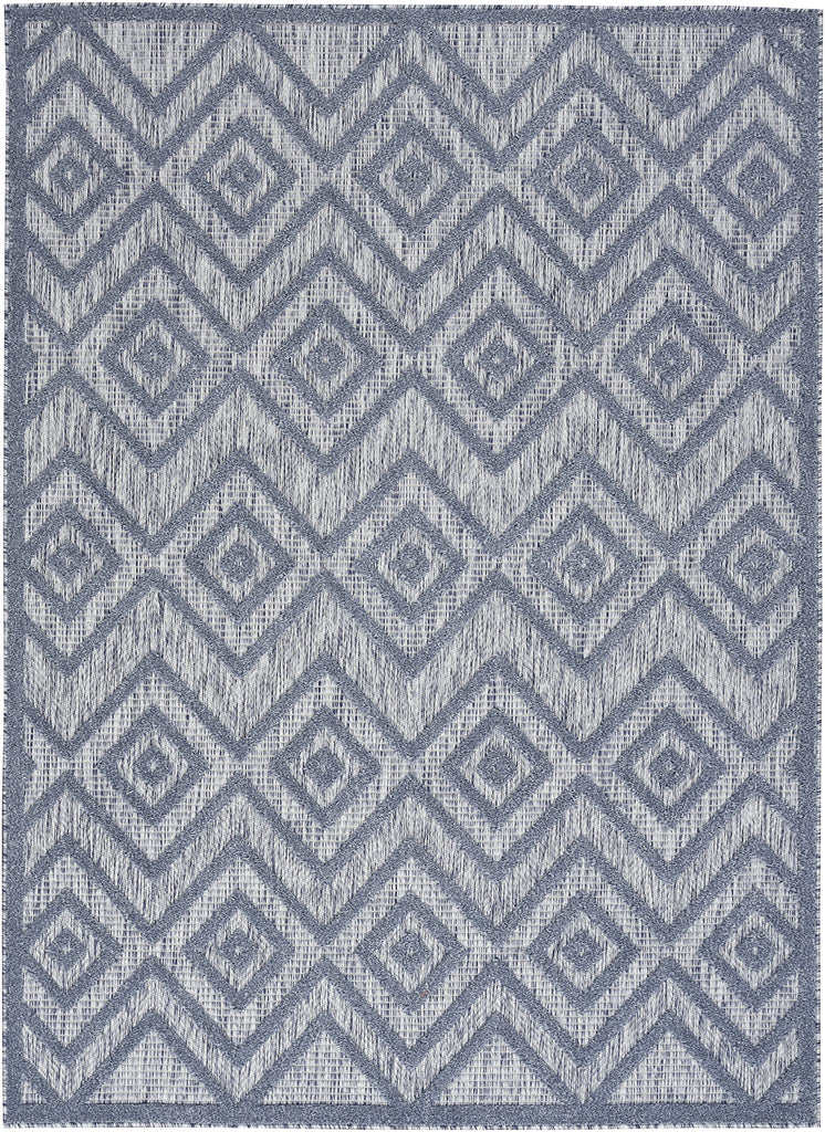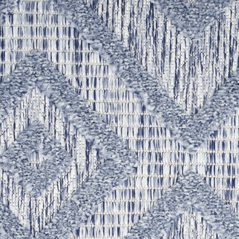 Details: Enhance your indoor or outdoor space with the contemporary appeal of an outdoor rug from the Nourison Versatile Collection. These dynamically textured rugs feature a flatwoven ground with raised designs that feel incredibly soft to the touch, adding an instant layer of depth to just about any space – from living room and dining room to patio, porch, or deck. Machine-made from a blend of durable polypropylene and polyester fibers that are easy to clean: just hose rinse and air dry. This denim blue Nourison Versatile Collection rug brings inviting style to your favorite indoor or outdoor space. With a raised diamond design in that stands out beautifully against its flatwoven ground, this outdoor rug enhances your space with delightful texture and modern appeal. Machine-made from durable, easy-to-clean fibers, Versatile is great for high-traffic areas inside the home as well as all seasons spent outdoors.