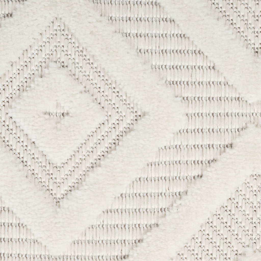 Details: Enhance your indoor or outdoor space with the contemporary appeal of an outdoor rug from the Nourison Versatile Collection. These dynamically textured rugs feature a flatwoven ground with raised designs that feel incredibly soft to the touch, adding an instant layer of depth to just about any space – from living room and dining room to patio, porch, or deck. Machine-made from a blend of durable polypropylene and polyester fibers that are easy to clean: just hose rinse and air dry. This ivory and white Nourison Versatile Collection rug brings inviting style to your favorite indoor or outdoor space. With a raised diamond design that stands out beautifully against its flatwoven ground, this outdoor rug enhances your space with delightful texture and modern appeal. Machine-made from durable, easy-to-clean fibers, Versatile is great for high-traffic areas inside the home as well as all seasons spent outdoors.