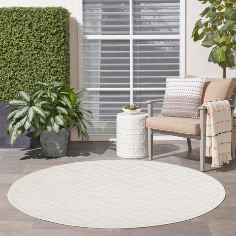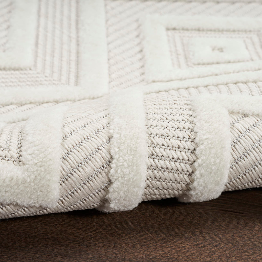 Details: Enhance your indoor or outdoor space with the contemporary appeal of an outdoor rug from the Nourison Versatile Collection. These dynamically textured rugs feature a flatwoven ground with raised designs that feel incredibly soft to the touch, adding an instant layer of depth to just about any space – from living room and dining room to patio, porch, or deck. Machine-made from a blend of durable polypropylene and polyester fibers that are easy to clean: just hose rinse and air dry. This ivory and white Nourison Versatile Collection rug brings inviting style to your favorite indoor or outdoor space. With a raised diamond design that stands out beautifully against its flatwoven ground, this outdoor rug enhances your space with delightful texture and modern appeal. Machine-made from durable, easy-to-clean fibers, Versatile is great for high-traffic areas inside the home as well as all seasons spent outdoors.