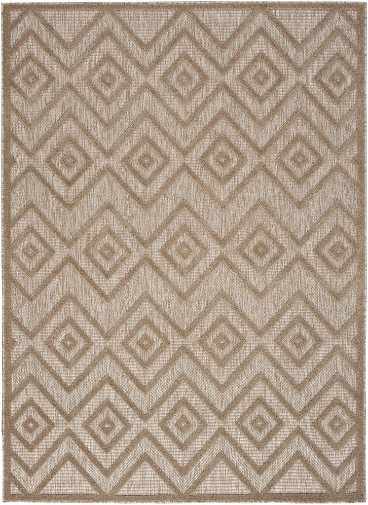 Details: Enhance your indoor or outdoor space with the contemporary appeal of an outdoor rug from the Nourison Versatile Collection. These dynamically textured rugs feature a flatwoven ground with raised designs that feel incredibly soft to the touch, adding an instant layer of depth to just about any space – from living room and dining room to patio, porch, or deck. Machine-made from a blend of durable polypropylene and polyester fibers that are easy to clean: just hose rinse and air dry. This taupe Nourison Versatile Collection rug brings inviting style to your favorite indoor or outdoor space. With a raised diamond design in that stands out beautifully against its flatwoven ground, this outdoor rug enhances your space with delightful texture and modern appeal. Machine-made from durable, easy-to-clean fibers, Versatile is great for high-traffic areas inside the home as well as all seasons spent outdoors.