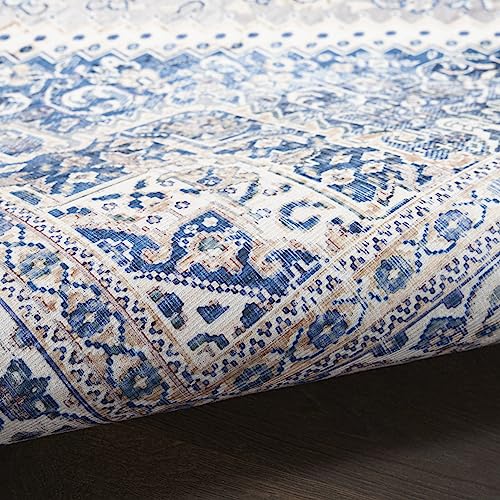 Details: Classic style is brought to the modern age with the Vintage Home Collection. Timeless Persian and simple abstract rug designs are vividly printed in a range of rich and muted colors, which are finished with artful distressing that adds instant character to your home. These flatweave rugs are enhanced with a built-in nonslip back that adds safety to hard floors. Choose from a variety of sizes including runner rugs for the kitchen and hallway to standard 5x7 and 6x9 rugs for the living room and bedroom. Ground your room in the timeless style of this Persian rug from the Vintage Home Collection. The heirloom-inspired floral pattern is printed in rich beige and blue tones that create an eye-catching look. With a tasteful fade that adds a touch of rustic flair, this vintage-style flatweave rug is at home in boho, traditional, and contemporary settings alike. Includes a nonslip backing for added safety on hard floors – ideal for use in any space including the living room, kitchen, bathroom, and hallway.