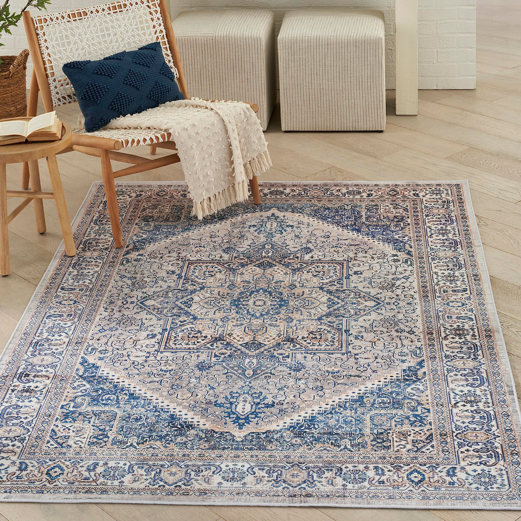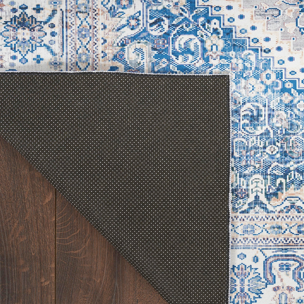 Details: Classic style is brought to the modern age with the Vintage Home Collection. Timeless Persian and simple abstract rug designs are vividly printed in a range of rich and muted colors, which are finished with artful distressing that adds instant character to your home. These flatweave rugs are enhanced with a built-in nonslip back that adds safety to hard floors. Choose from a variety of sizes including runner rugs for the kitchen and hallway to standard 5x7 and 6x9 rugs for the living room and bedroom. Ground your room in the timeless style of this Persian rug from the Vintage Home Collection. The heirloom-inspired floral pattern is printed in rich beige and blue tones that create an eye-catching look. With a tasteful fade that adds a touch of rustic flair, this vintage-style flatweave rug is at home in boho, traditional, and contemporary settings alike. Includes a nonslip backing for added safety on hard floors – ideal for use in any space including the living room, kitchen, bathroom, and hallway.